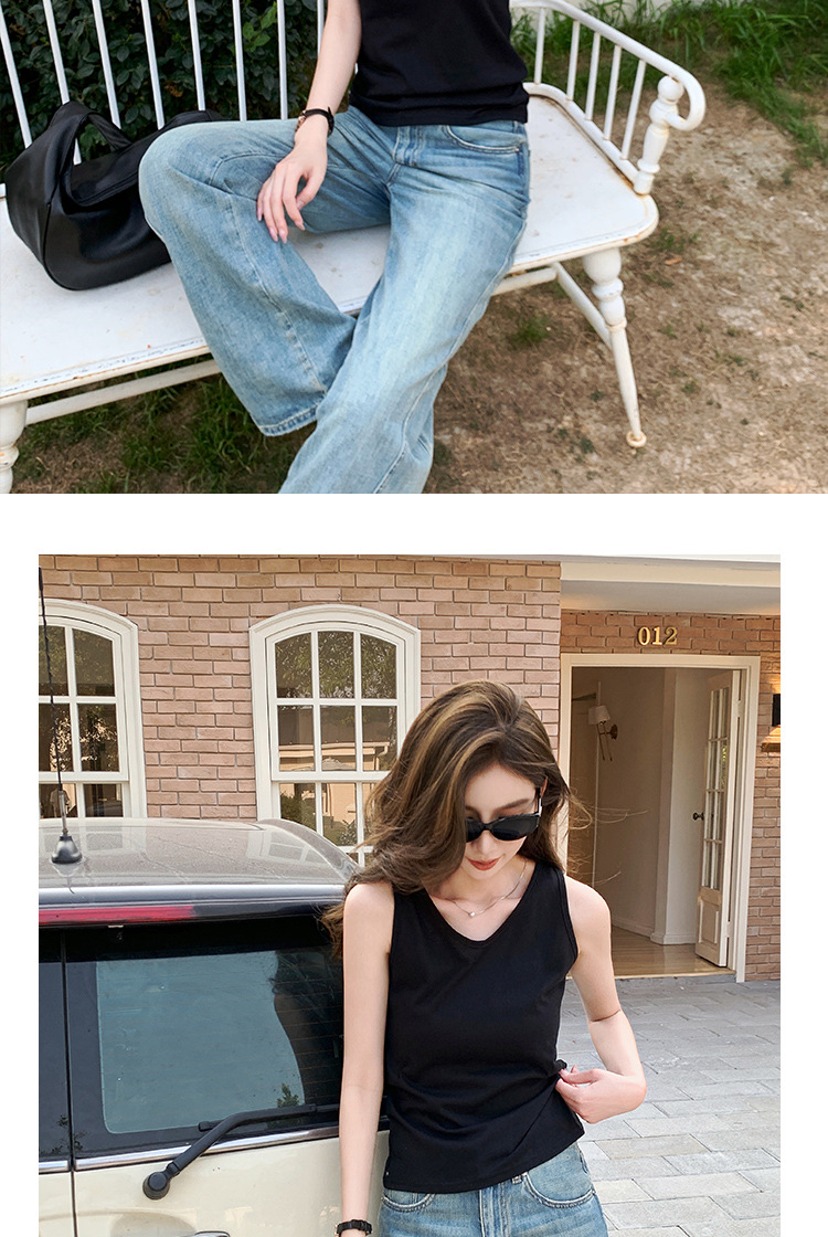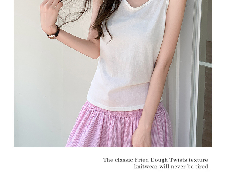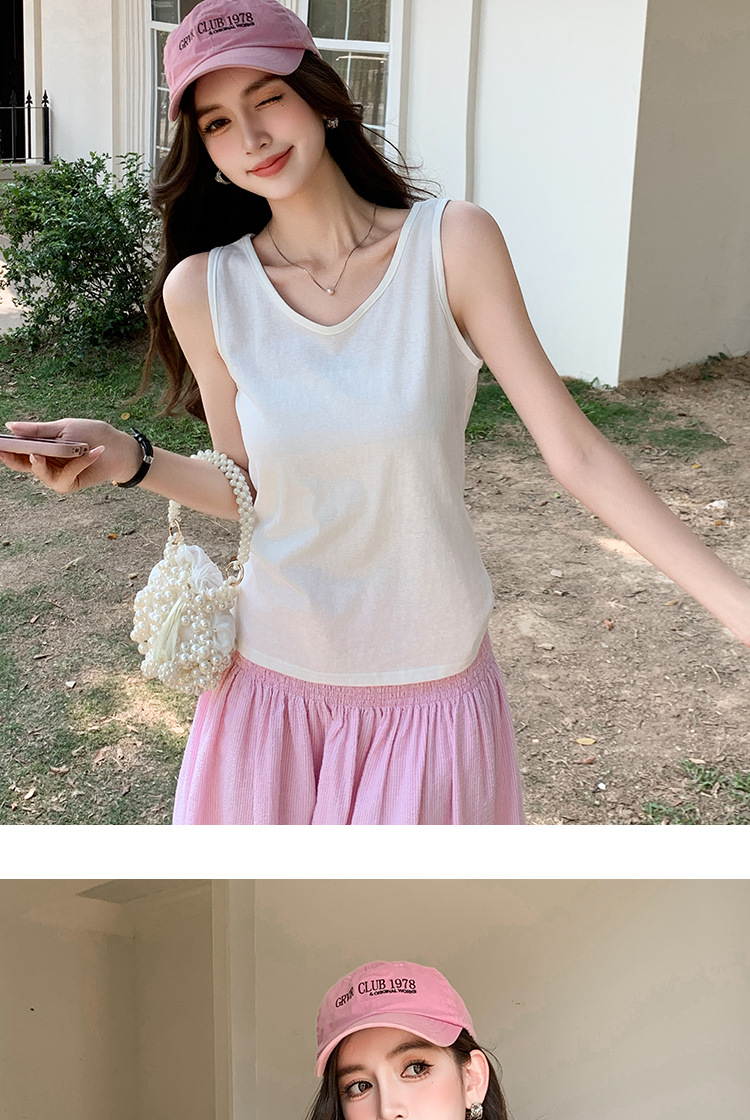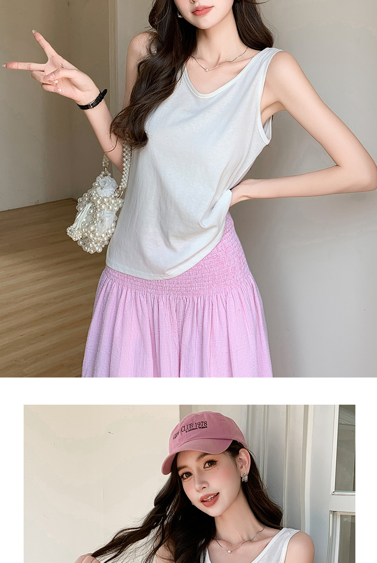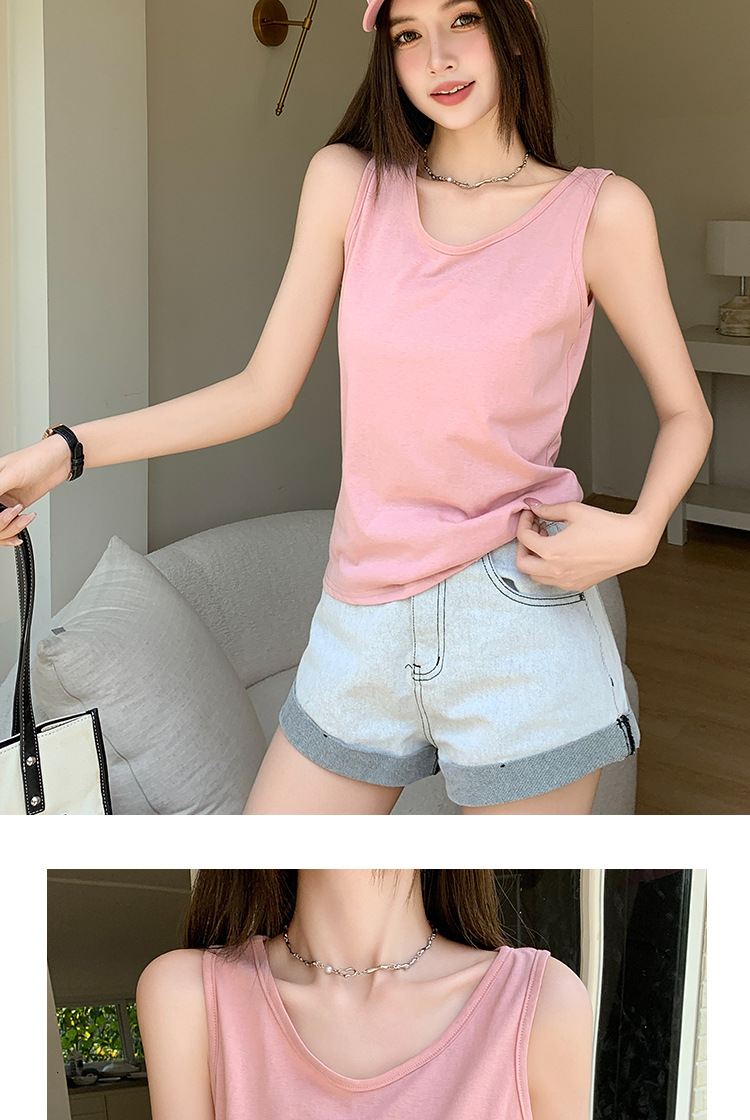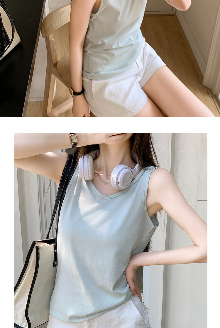 H925雪花棉吊带背心女夏外穿宽松遮肉打底内搭圆领无袖老汉衫上衣