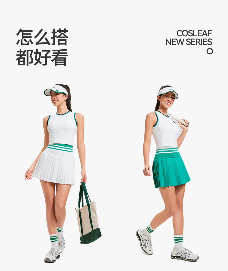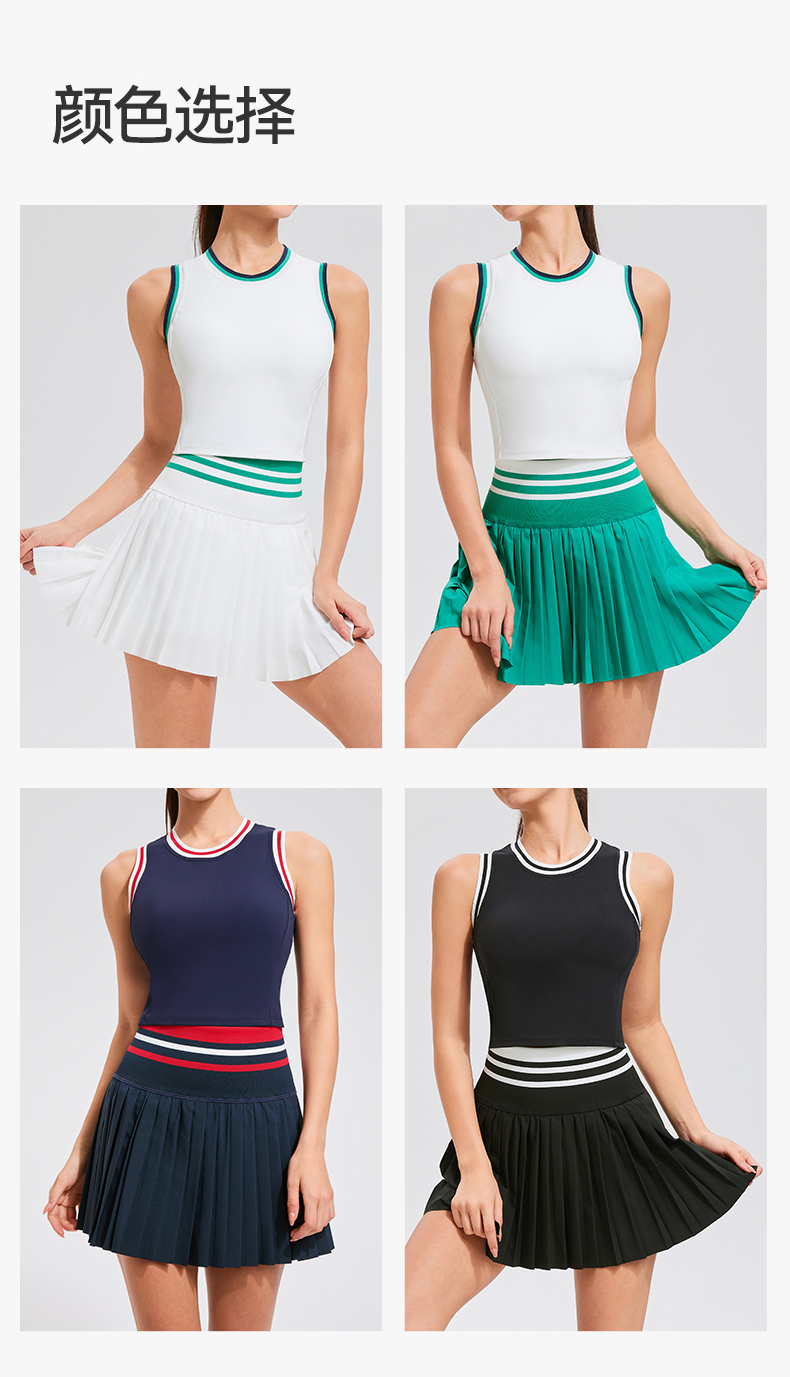 【上新】科里芙休闲时尚运动网球风透气健身跑步套装背心短裙女