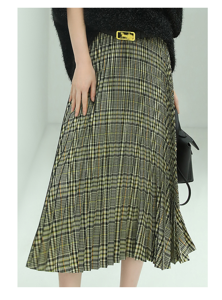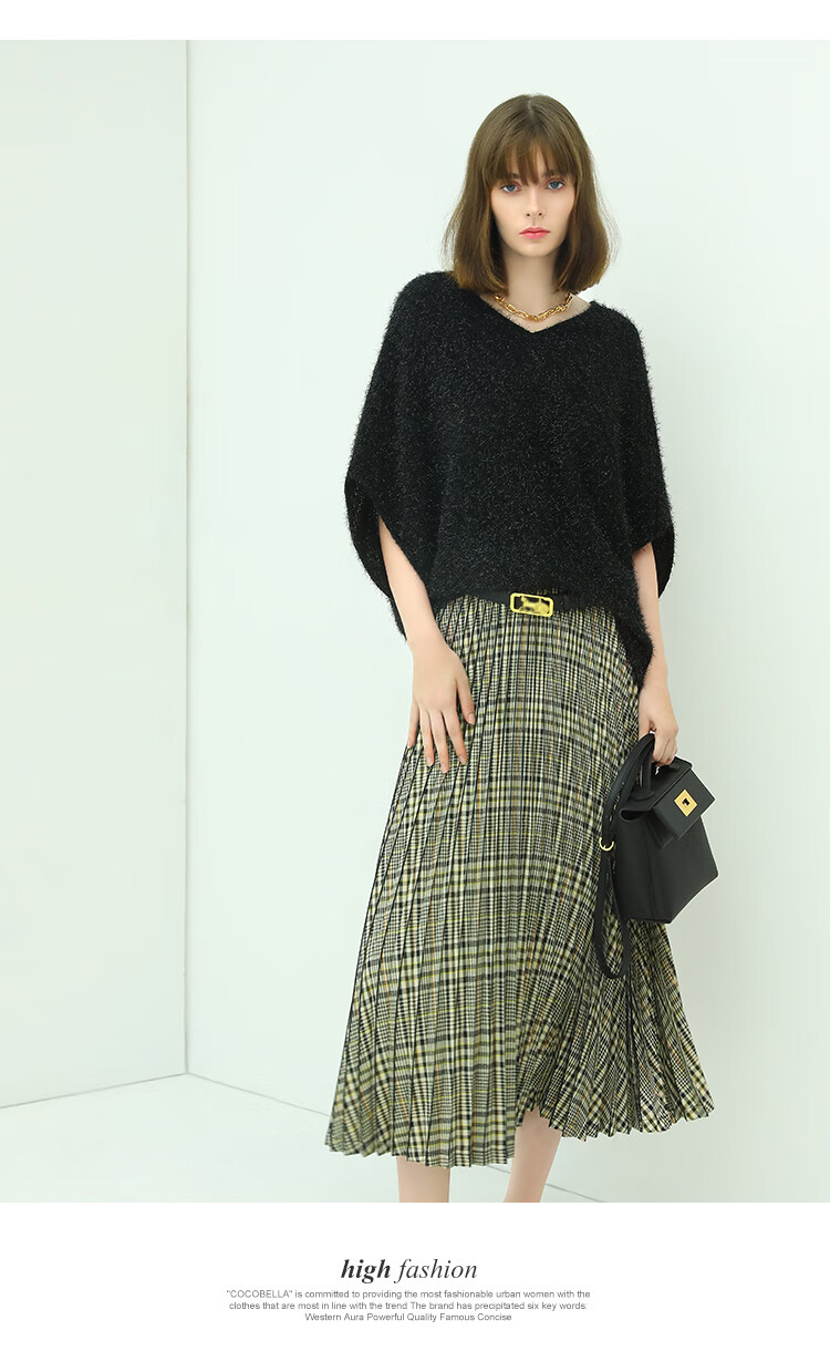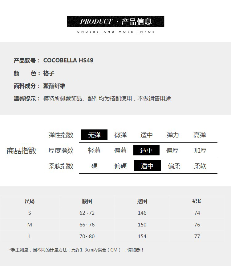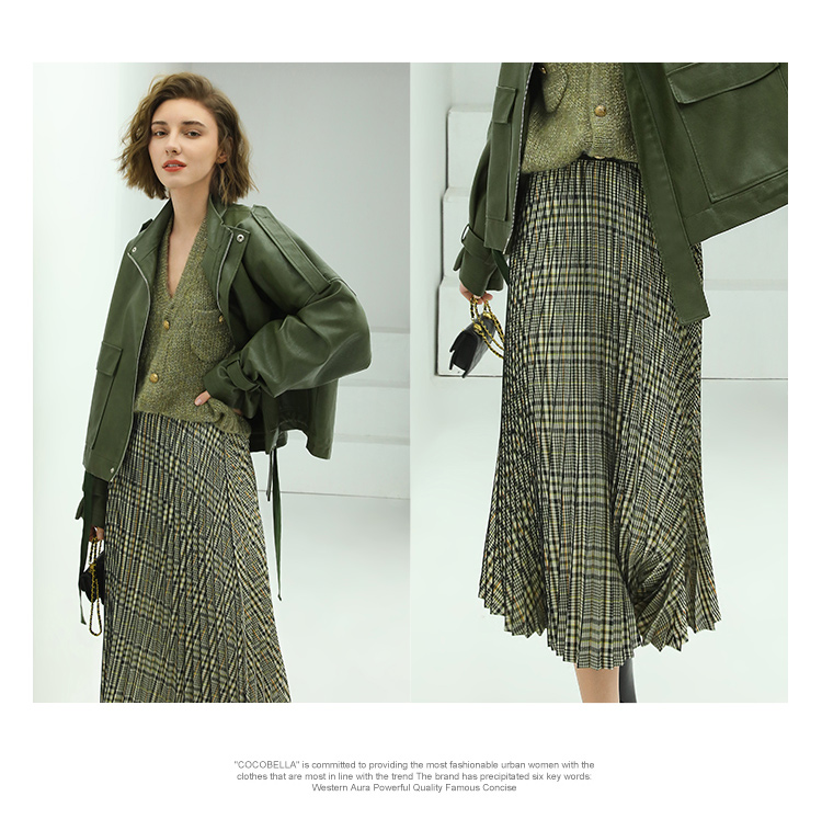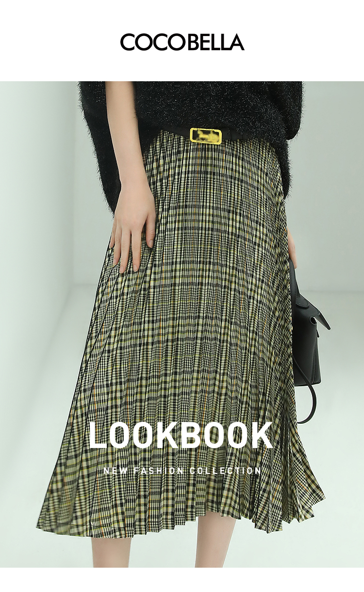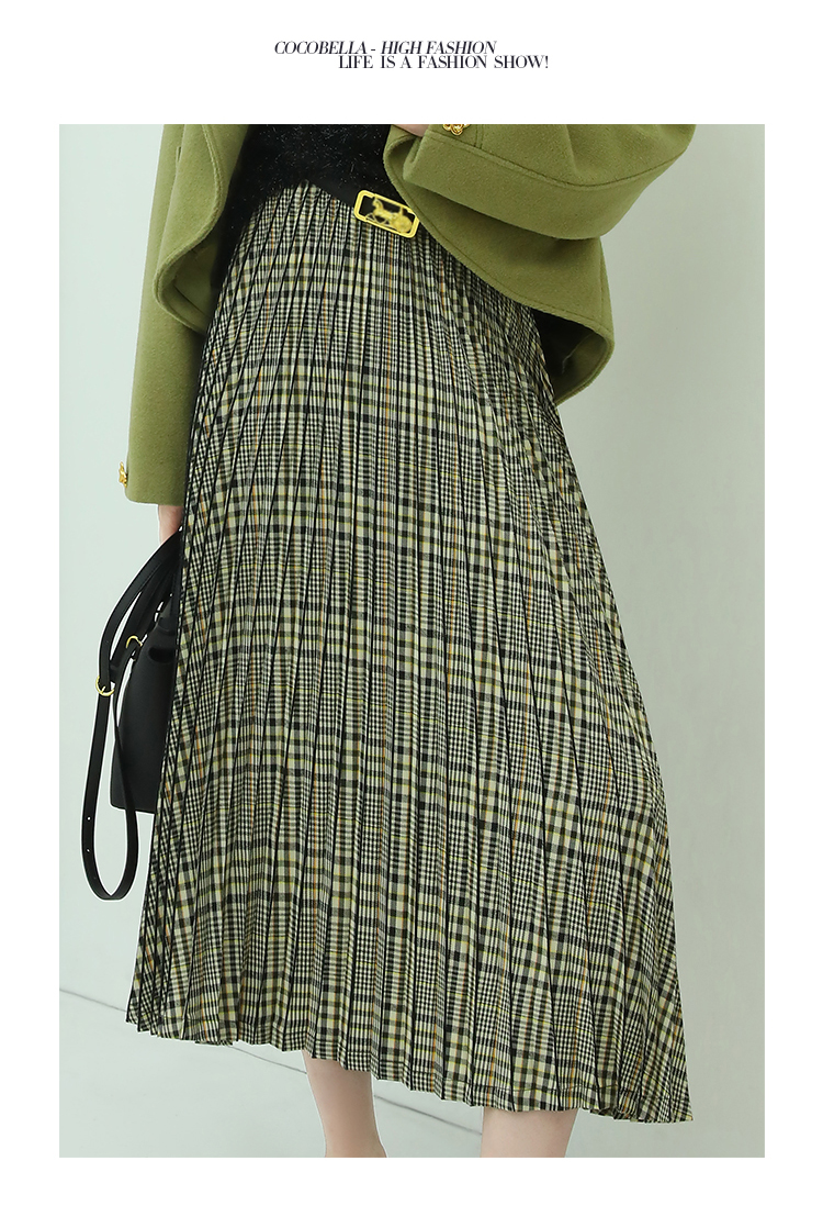 COCOBELLA重工压褶复古格纹迷笛裙女高腰A字半身裙长裙HS49