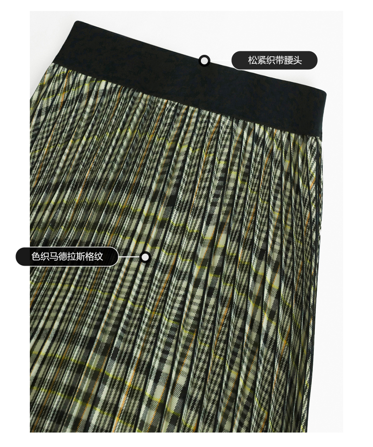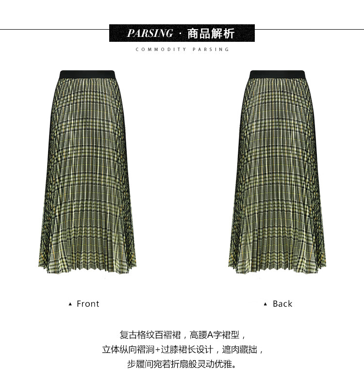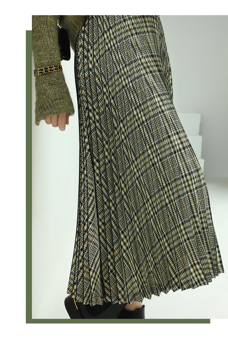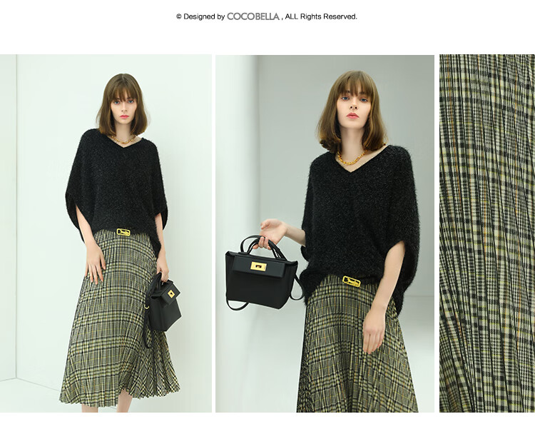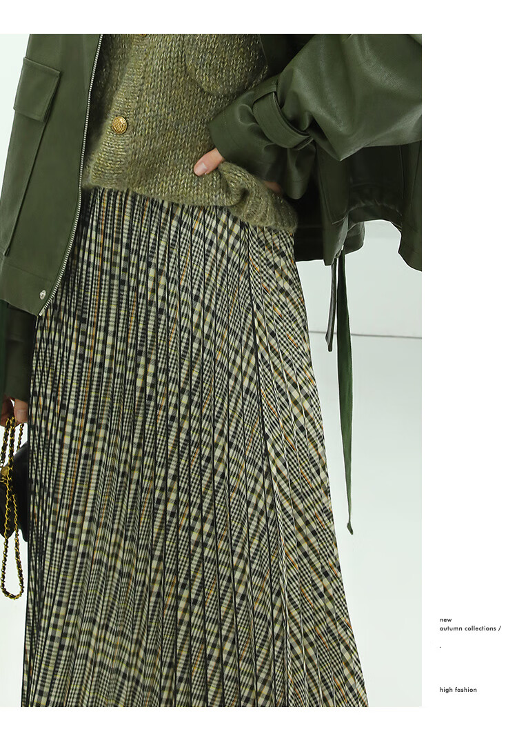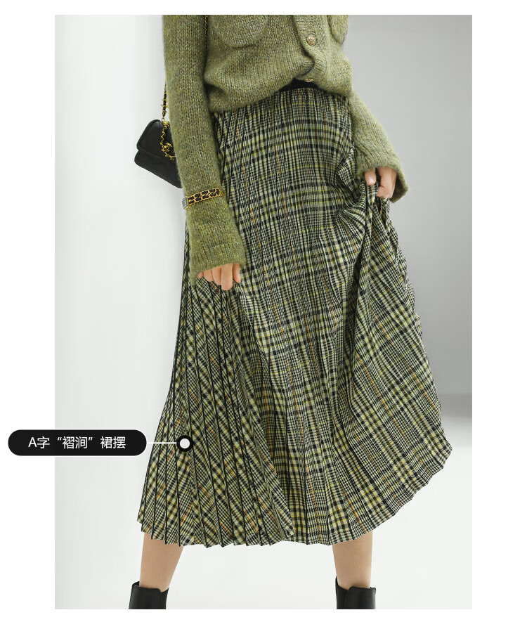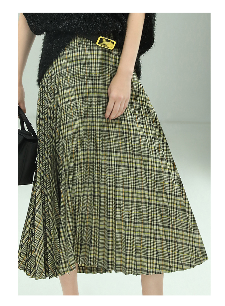 COCOBELLA重工压褶复古格纹迷笛裙女高腰A字半身裙长裙HS49