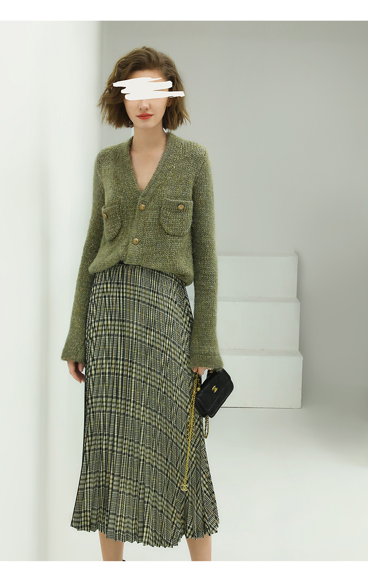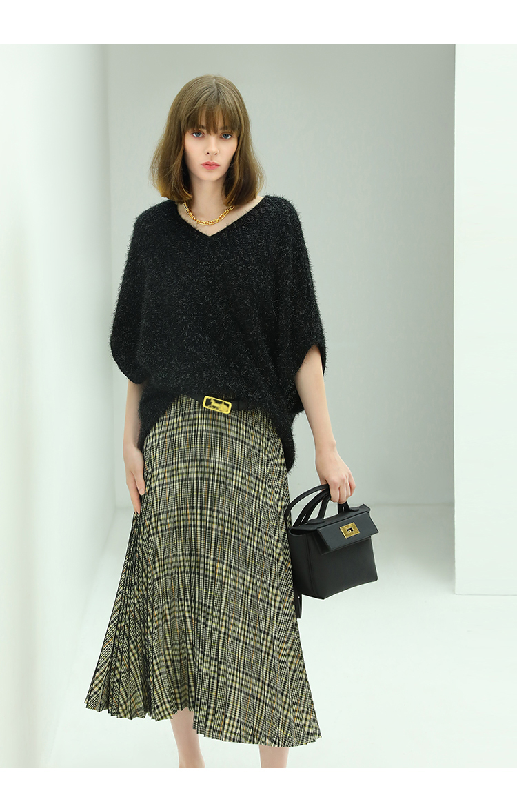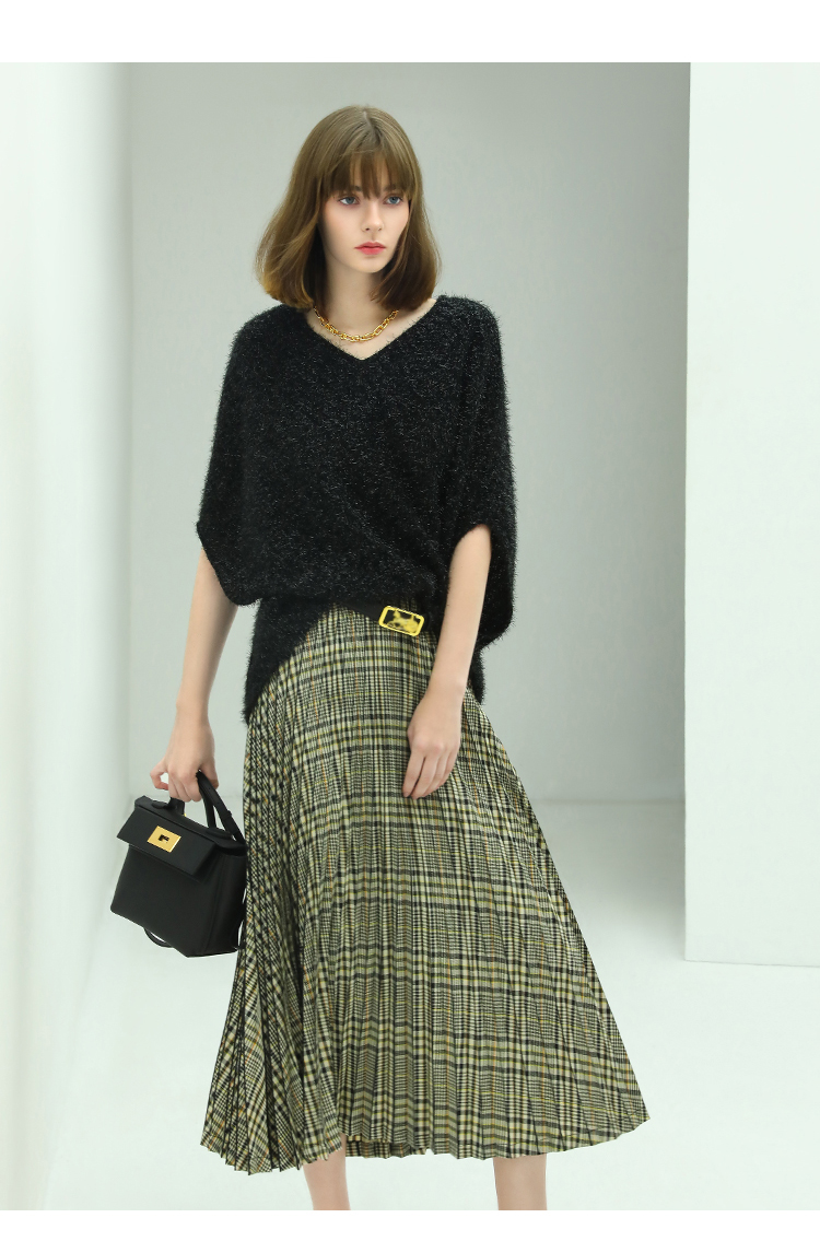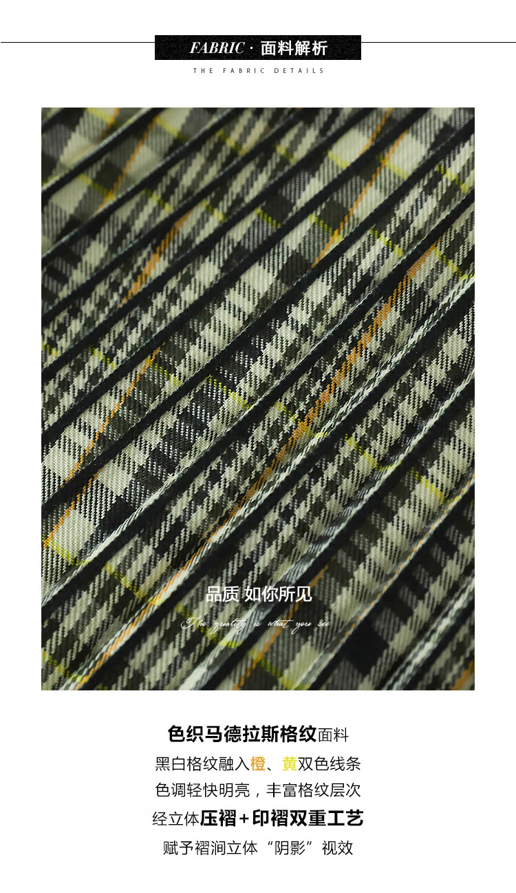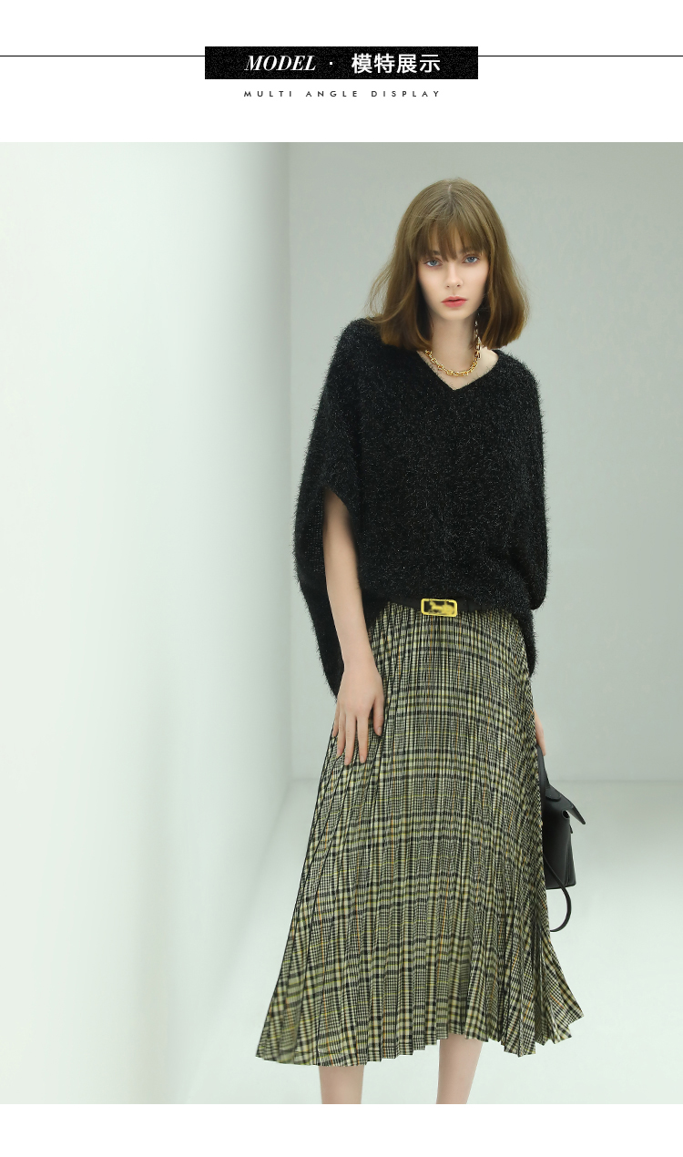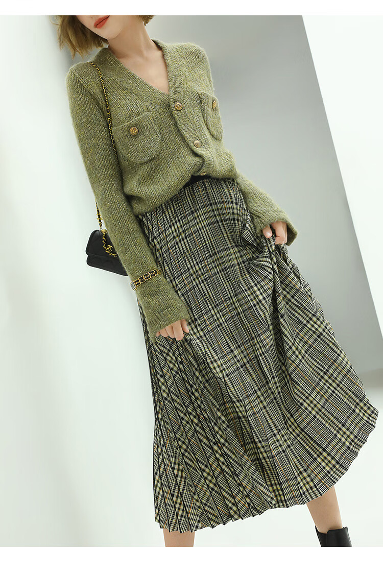 COCOBELLA重工压褶复古格纹迷笛裙女高腰A字半身裙长裙HS49