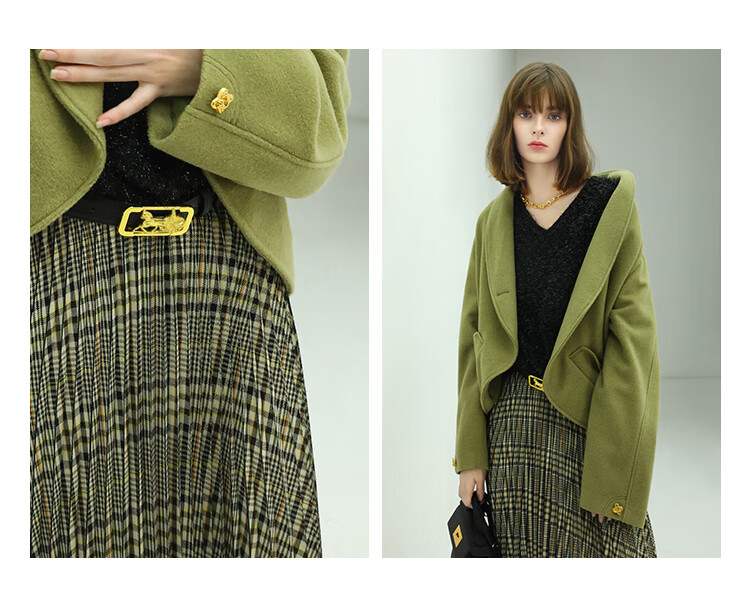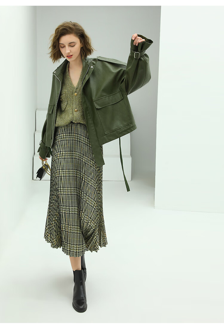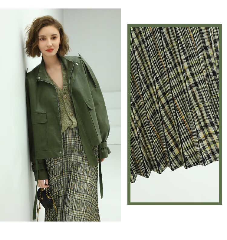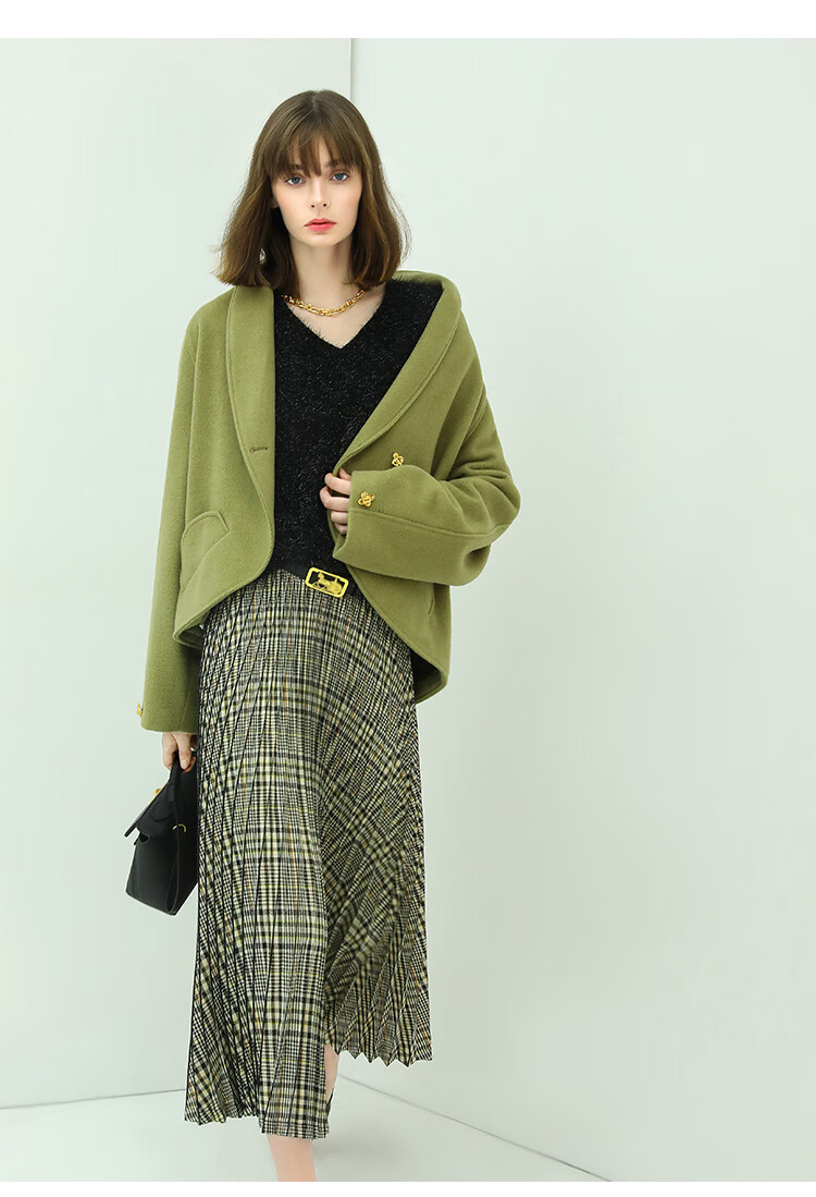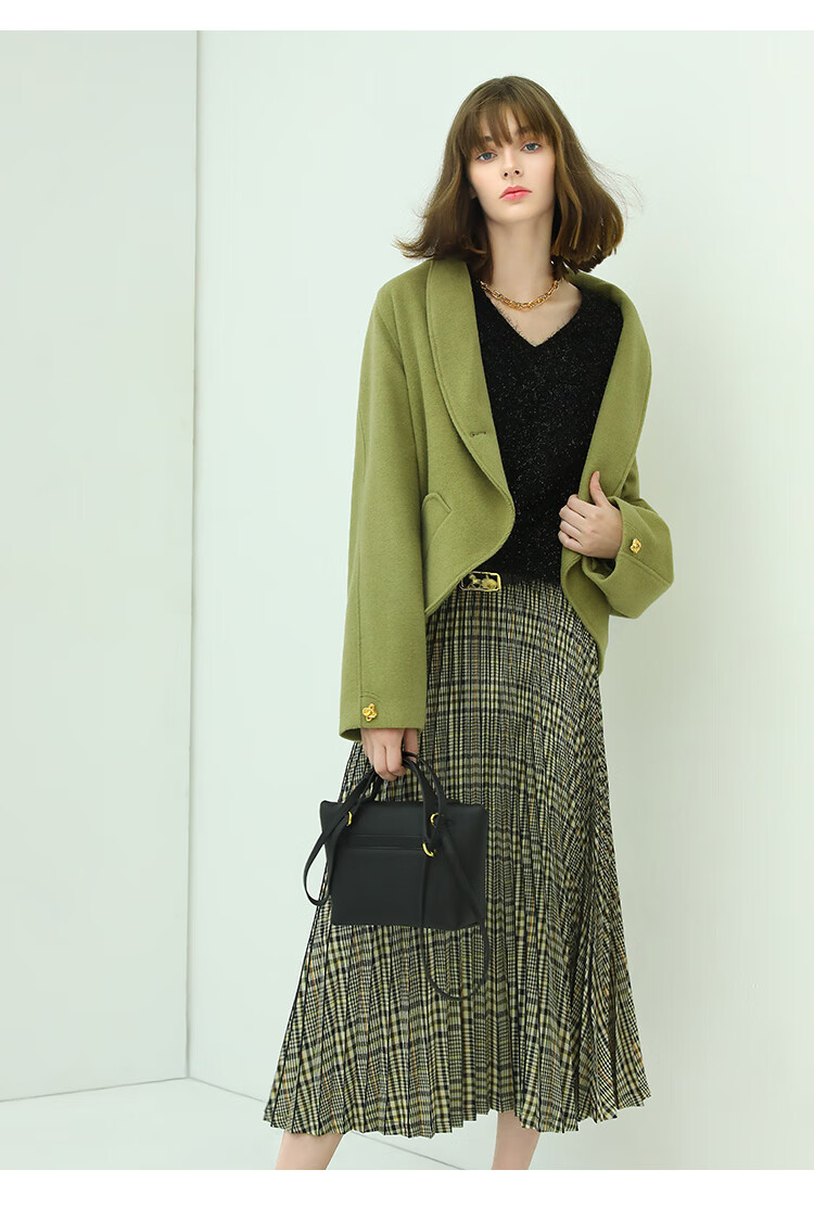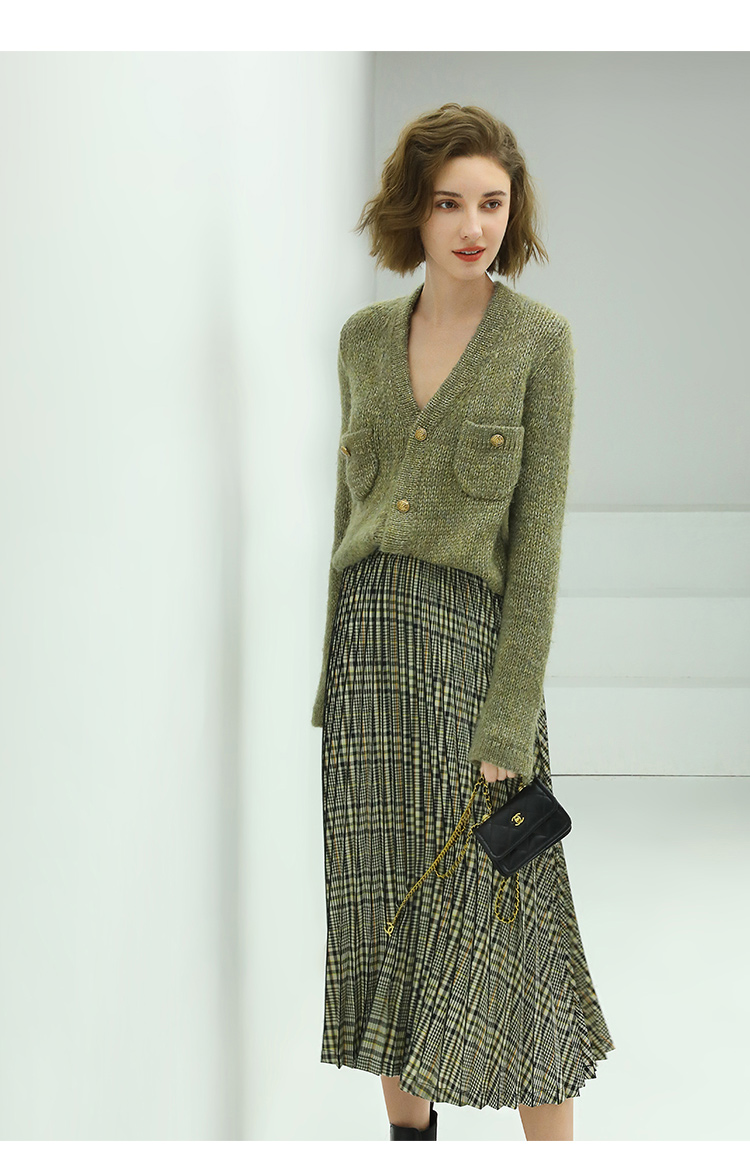 COCOBELLA重工压褶复古格纹迷笛裙女高腰A字半身裙长裙HS49