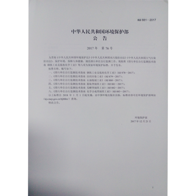 HJ881-2017 排污单位自行监测技术指南 提取类制药工业