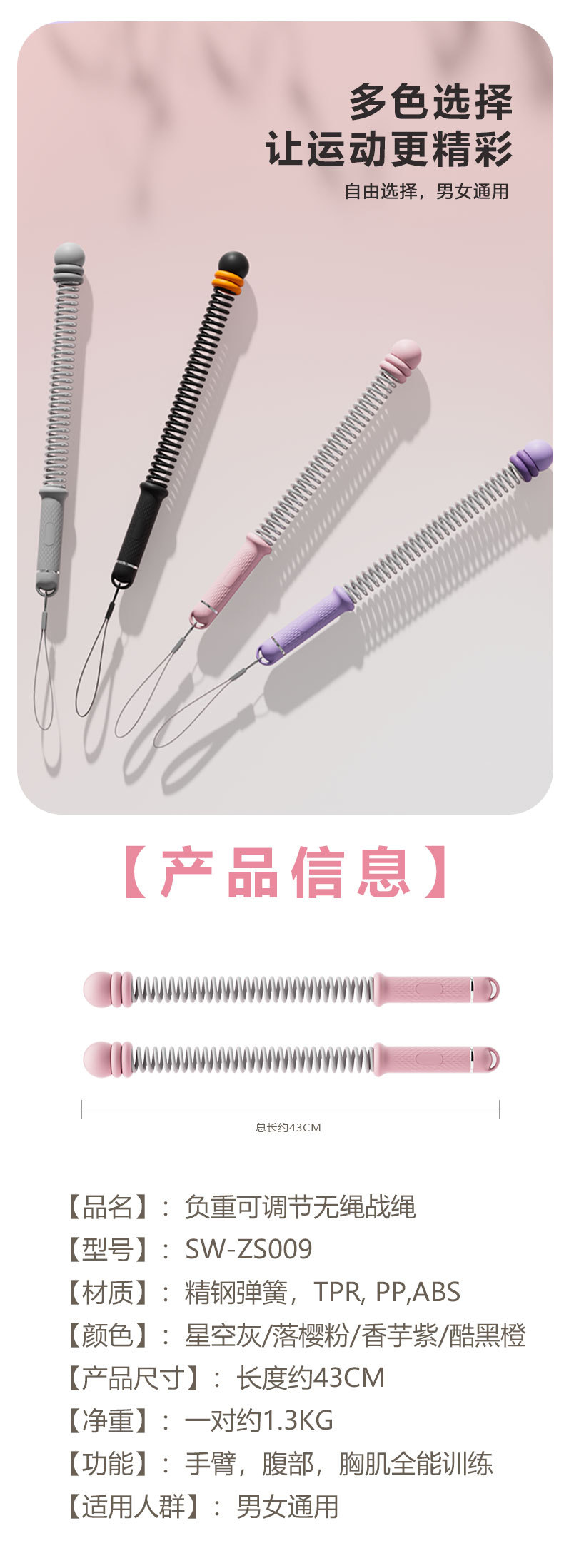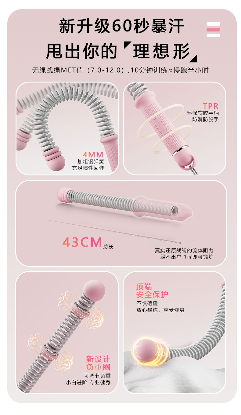 多功能无绳战绳甩绳弹簧棒 健身器材手臂力量体能训练神器战绳