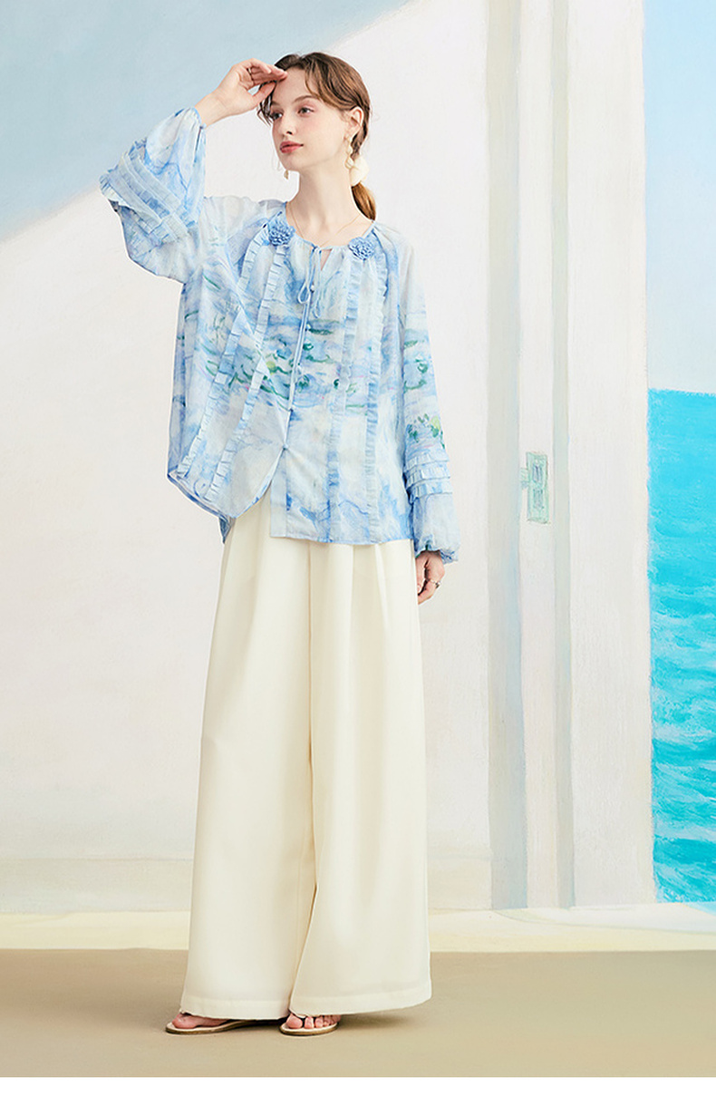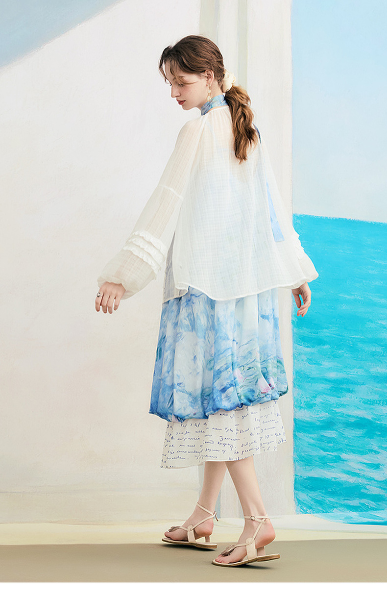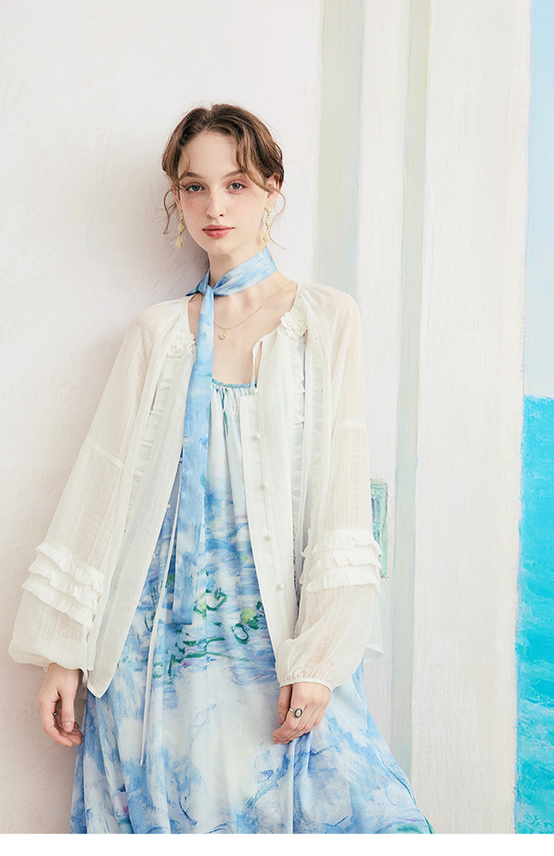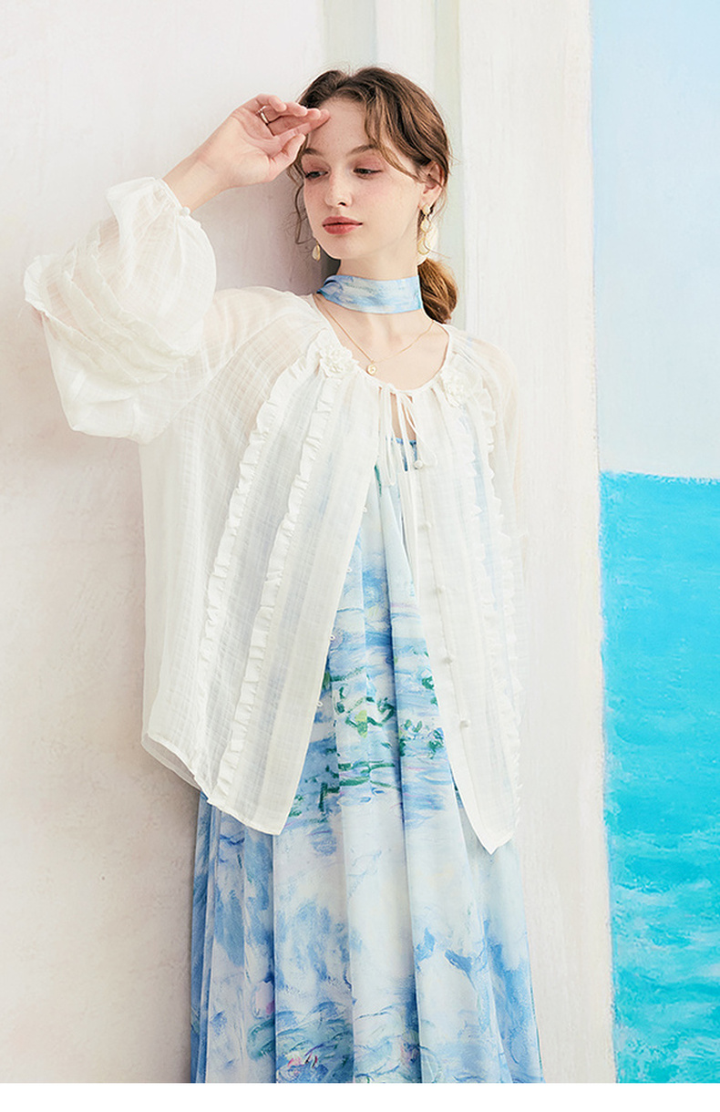 [沐光]防晒系列两三事浪潮之巅2024春新款绑带灯笼袖罩衫防晒外套