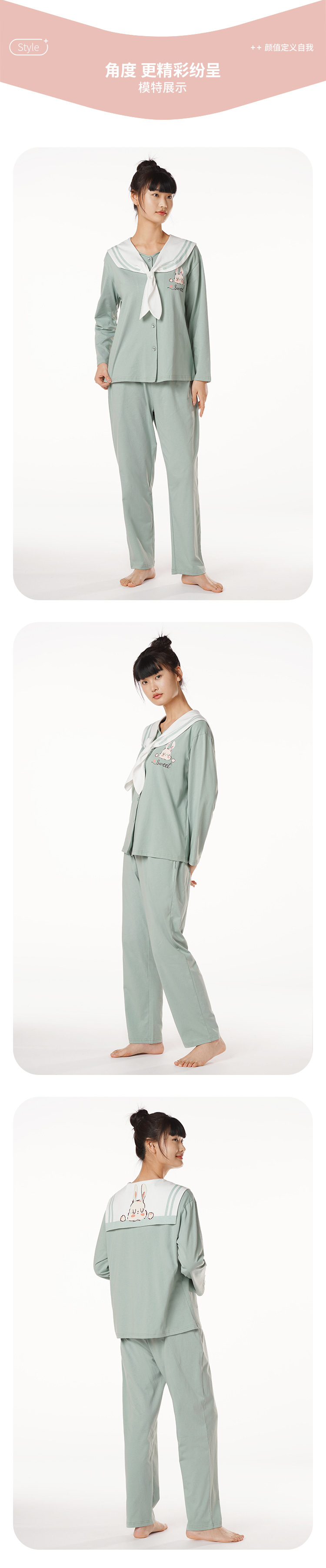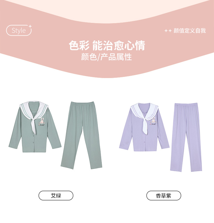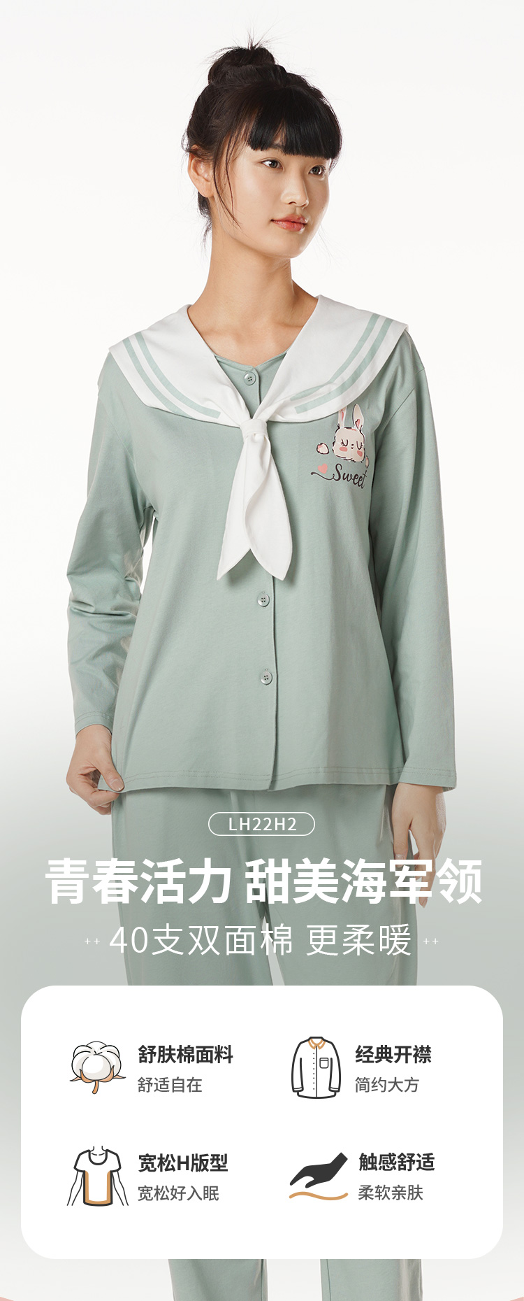 都市丽人生活家居棉质套装40支CVC双面中家居服长袖睡衣LH22H2