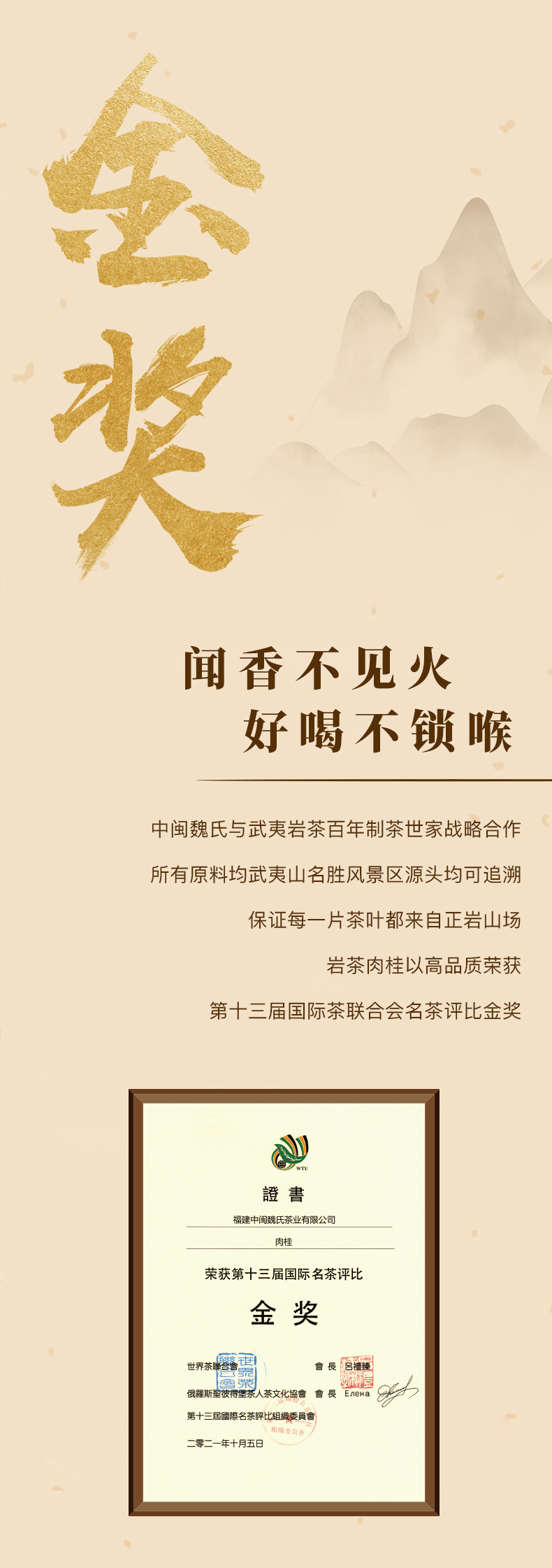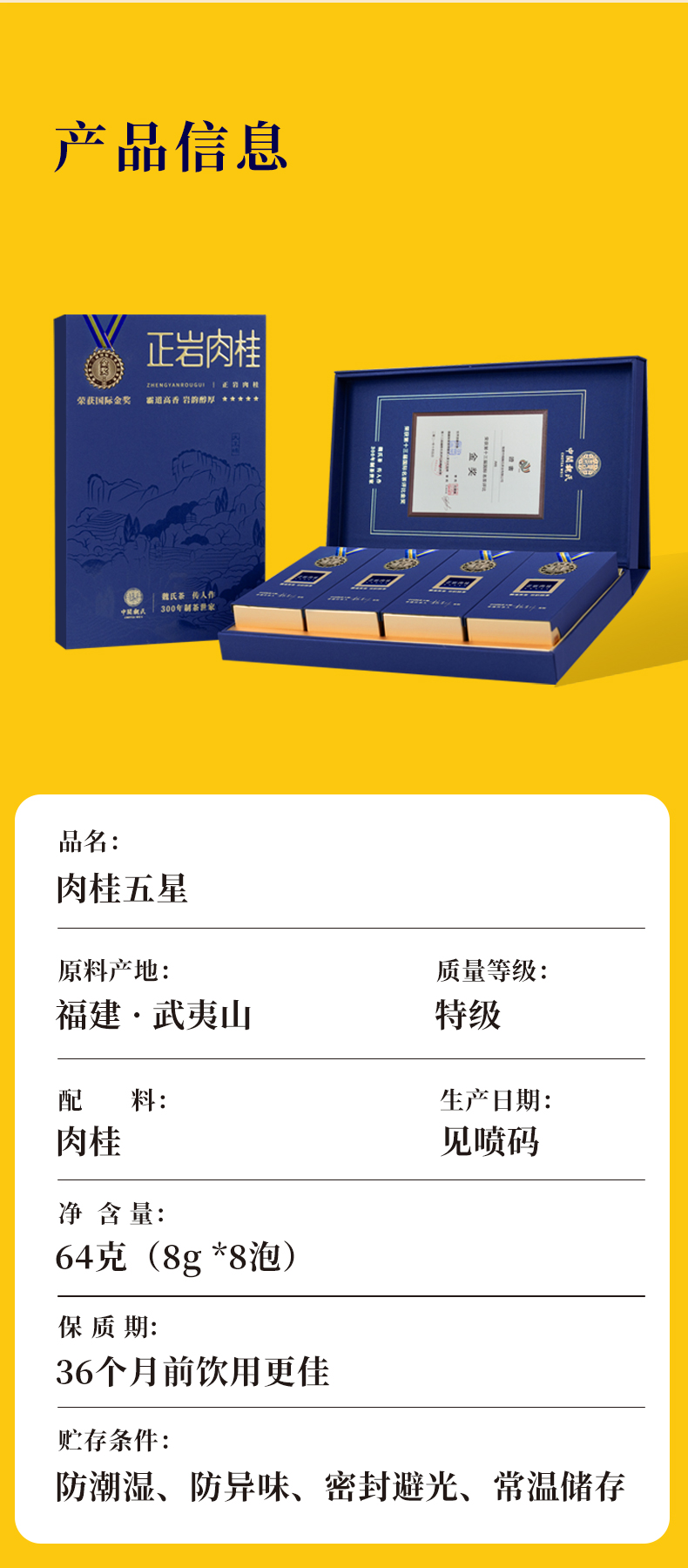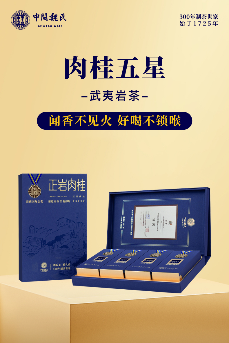 肉桂五星 武夷岩茶(正岩,核心产区)荣获国际茶联合会国际金奖 64克(8克*8泡)