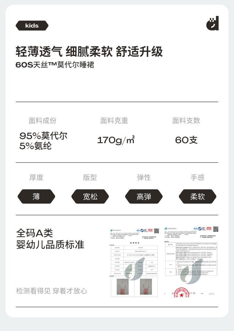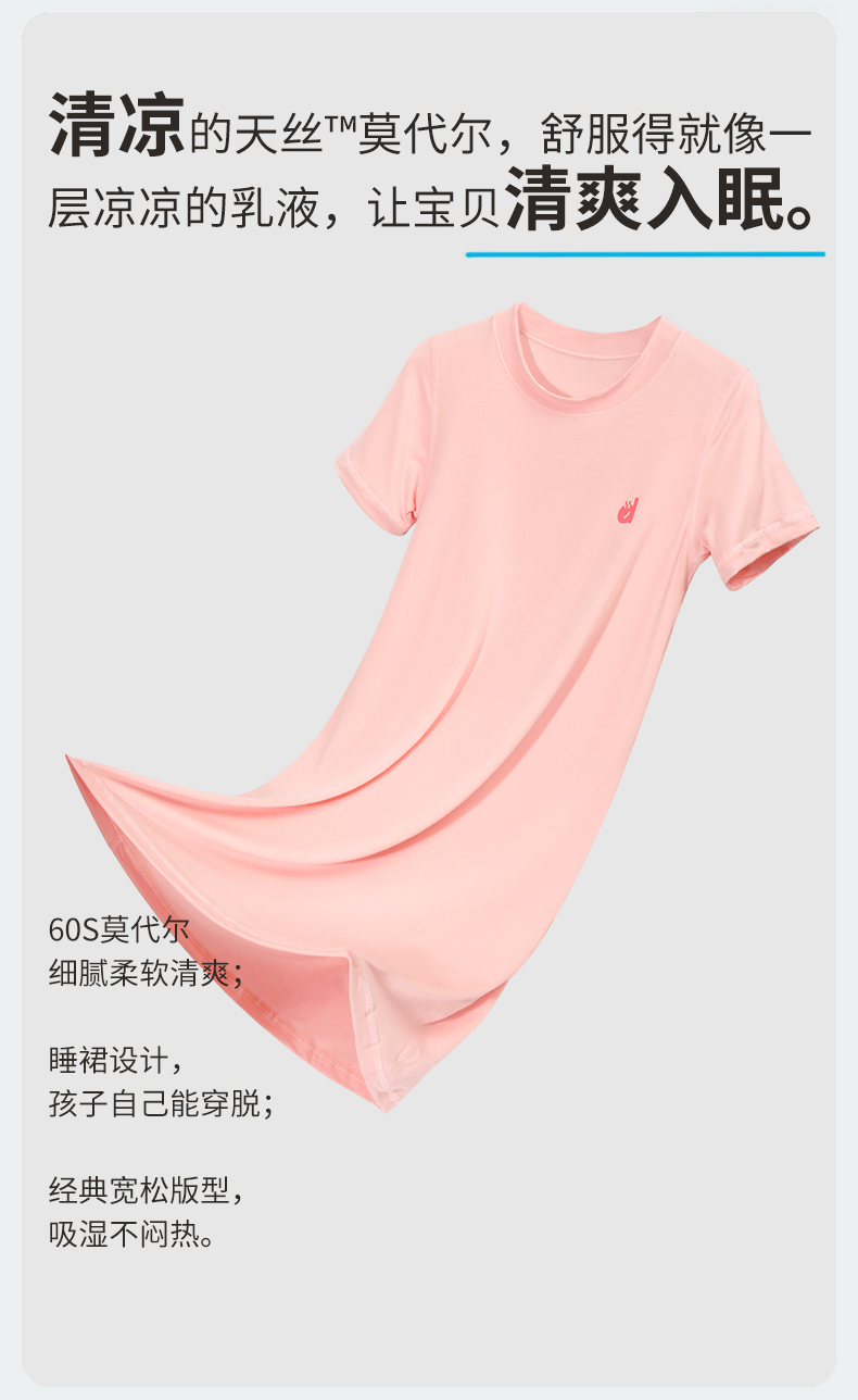 【兰精天丝莫代尔】朵熙儿女童短袖睡裙夏季凉感睡衣空调家居服
