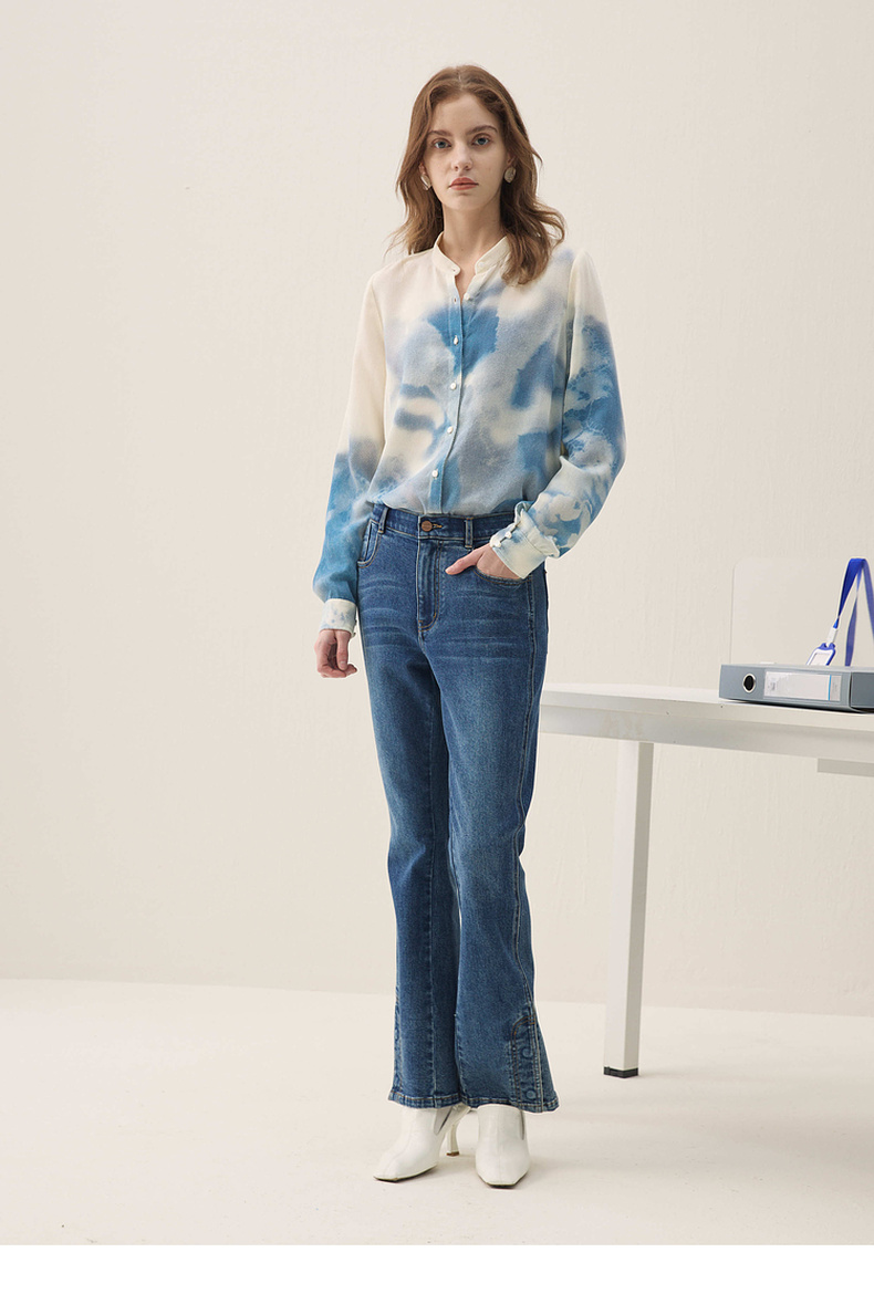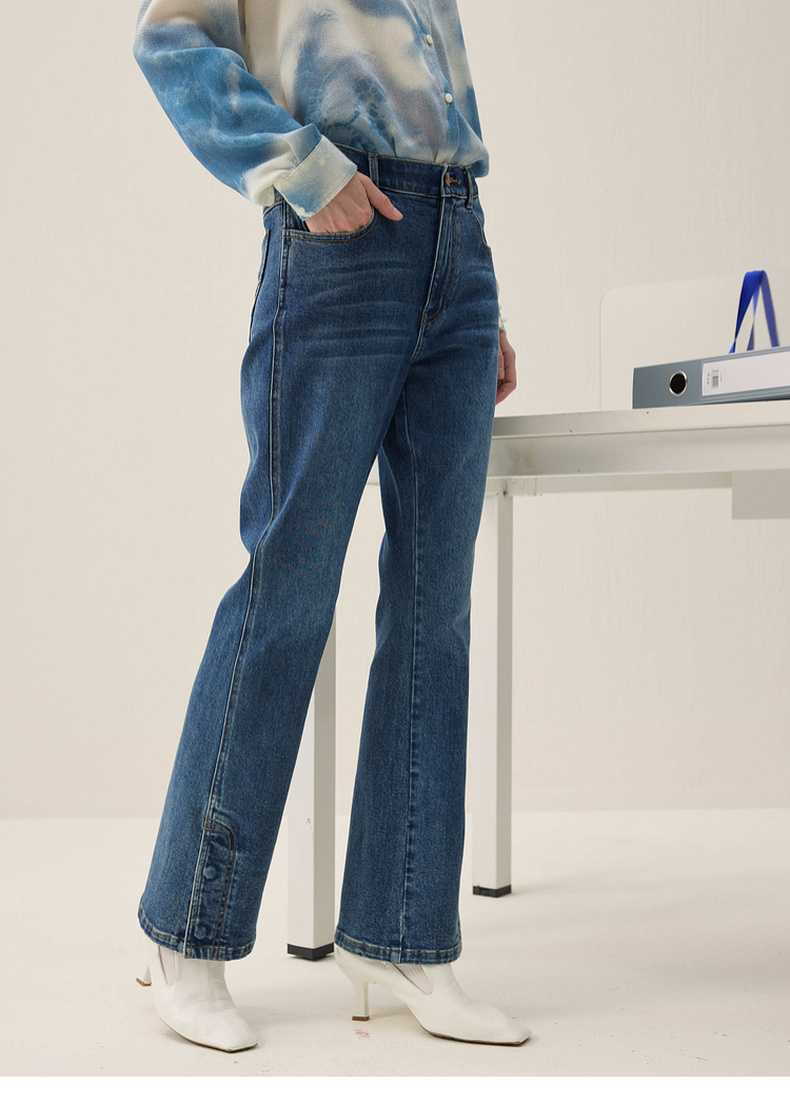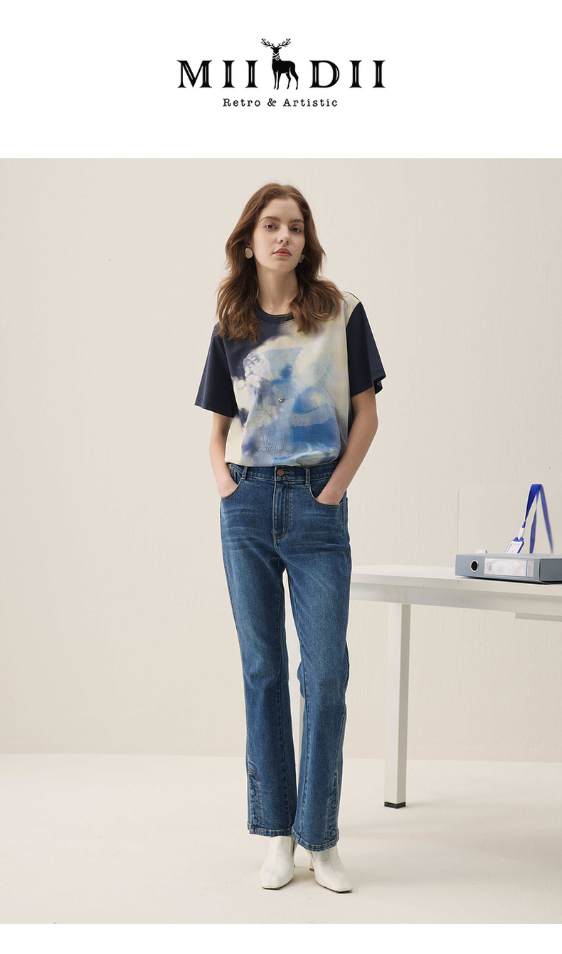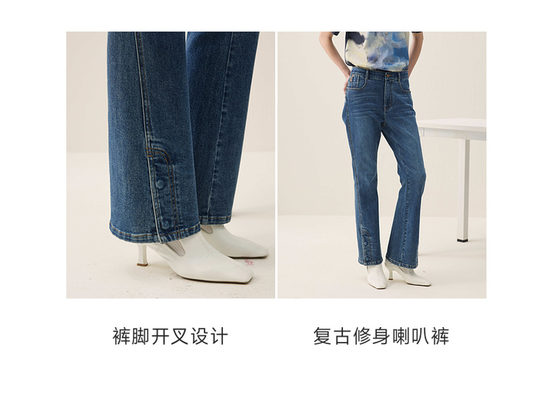 谜底喇叭牛仔裤九分裤2026春季新品复古开叉修饰腿型女261MJ0049