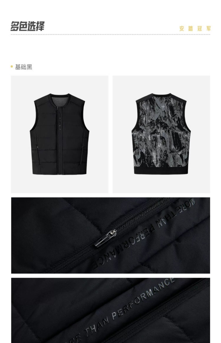 安踏冠军全天候系列 男士冬季保暖防泼水加绒厚运动马甲152510806