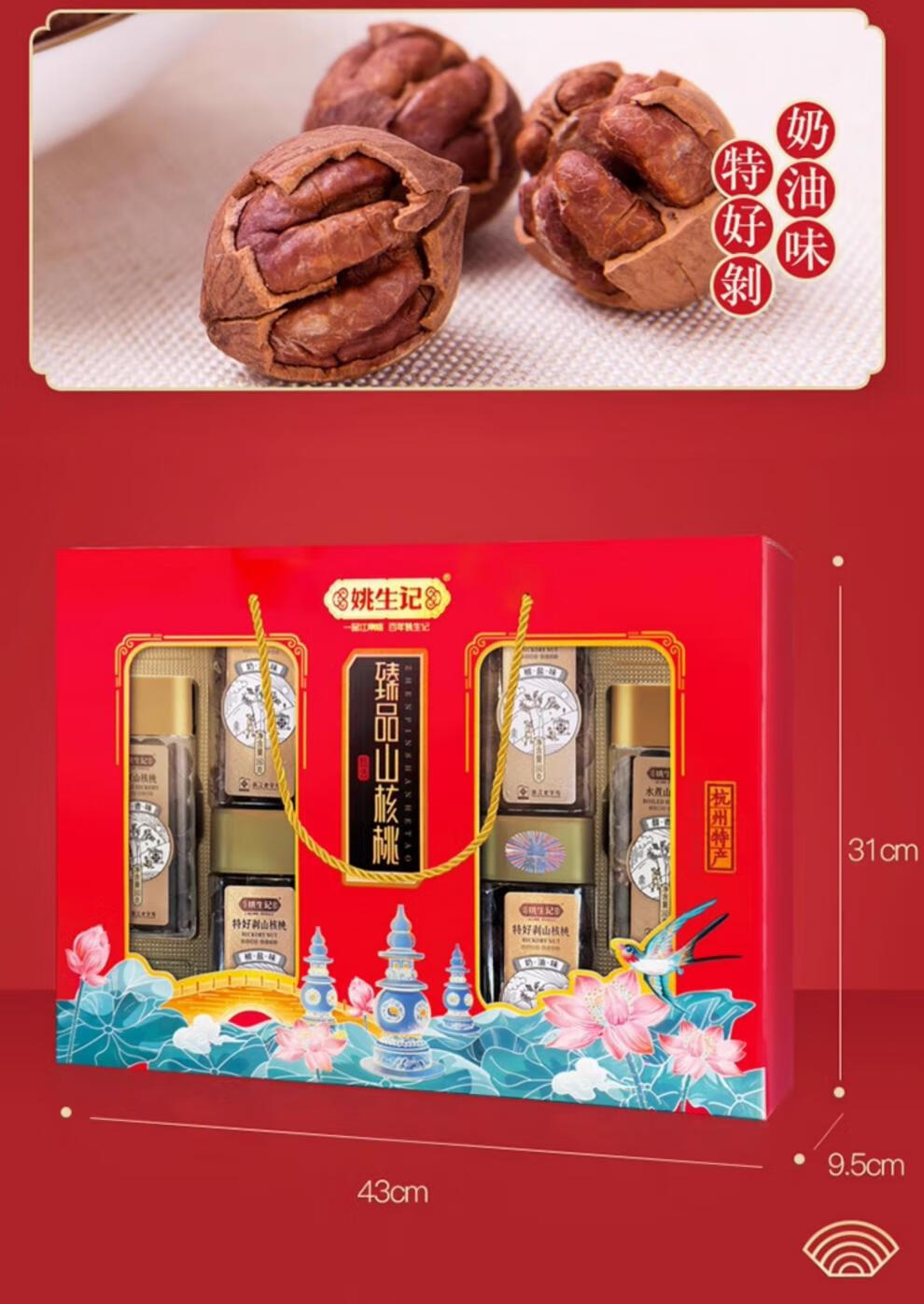 姚生记 精品山核桃礼盒(方形罐) 956g