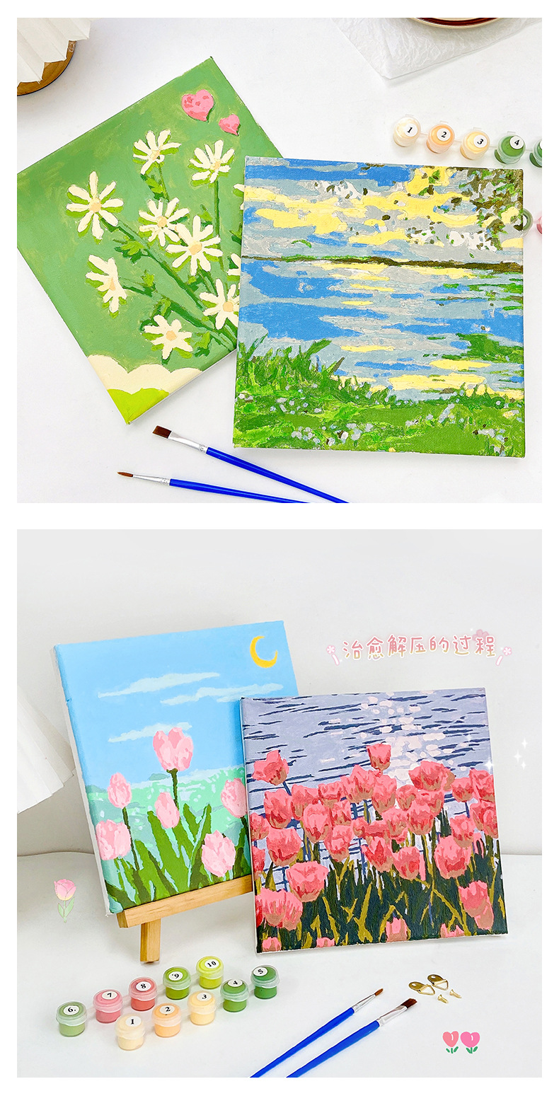 【丽享】【任选2幅 送三脚画架和挂勾】儿童数字油画手工DIY风景彩画学生儿童益智彩绘填色画儿童节六一礼物