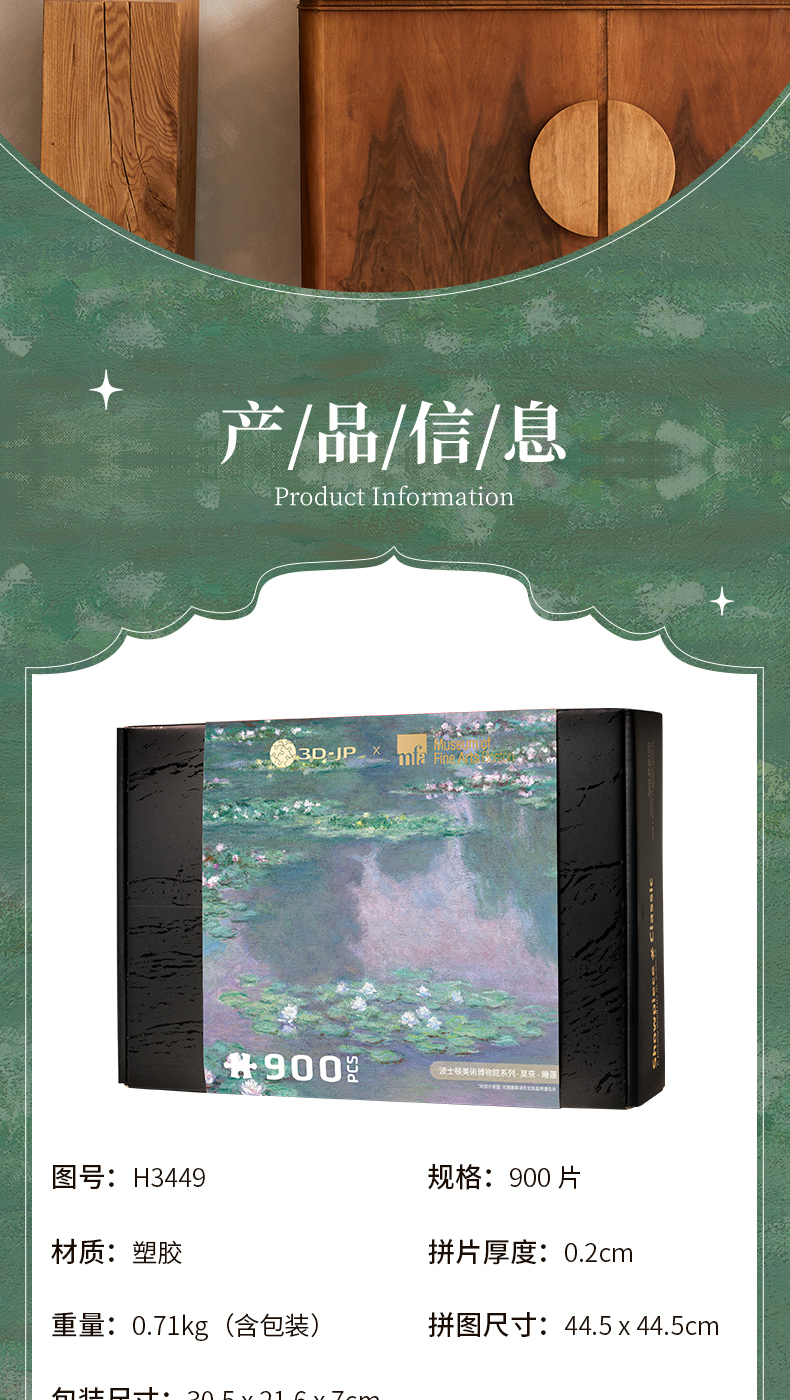 900片 平面塑料拼图 H3449 波士顿美术博物馆系列-莫奈-睡莲