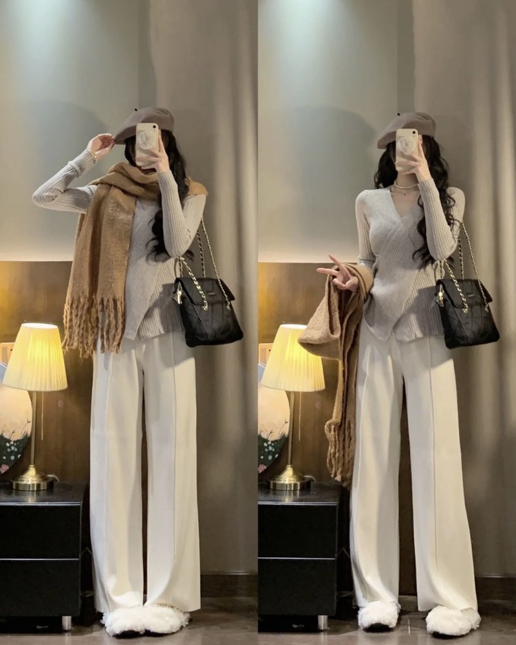670g加绒加厚❗保暖又显瘦❗【Beau Muse羊毛蚕丝窄版阔腿裤】分量感和高级感十足