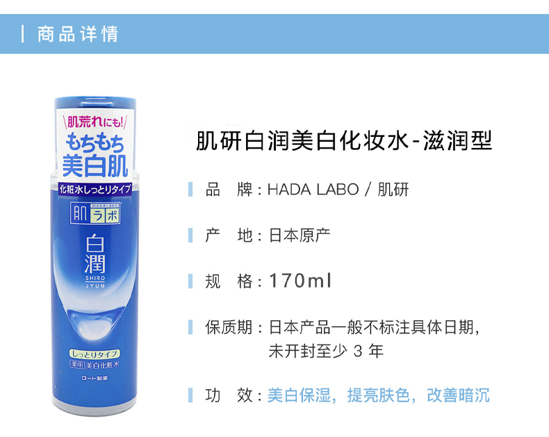 【保税仓】日本ROHTO/乐敦肌研极润美白补水化妆水170ml/瓶