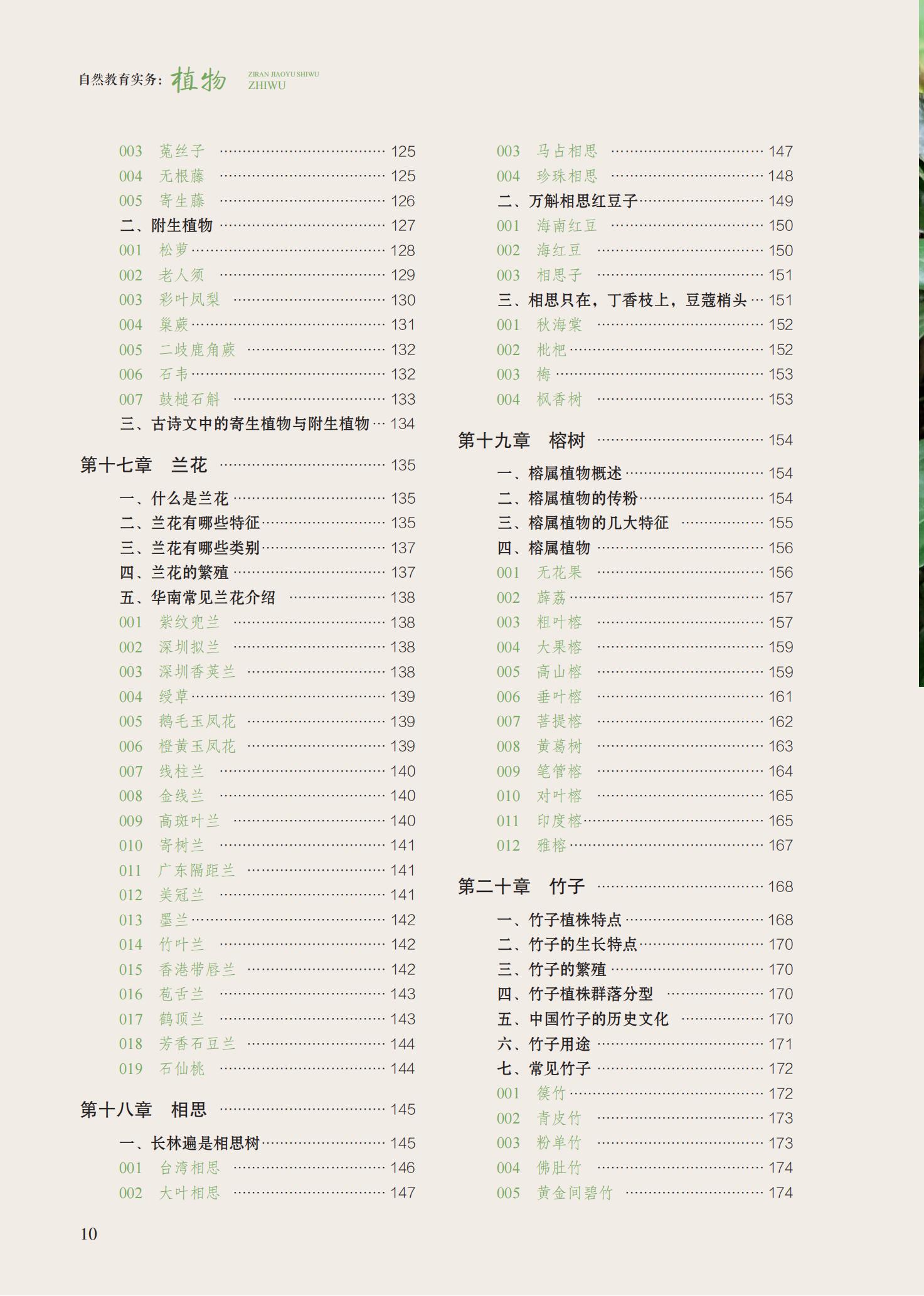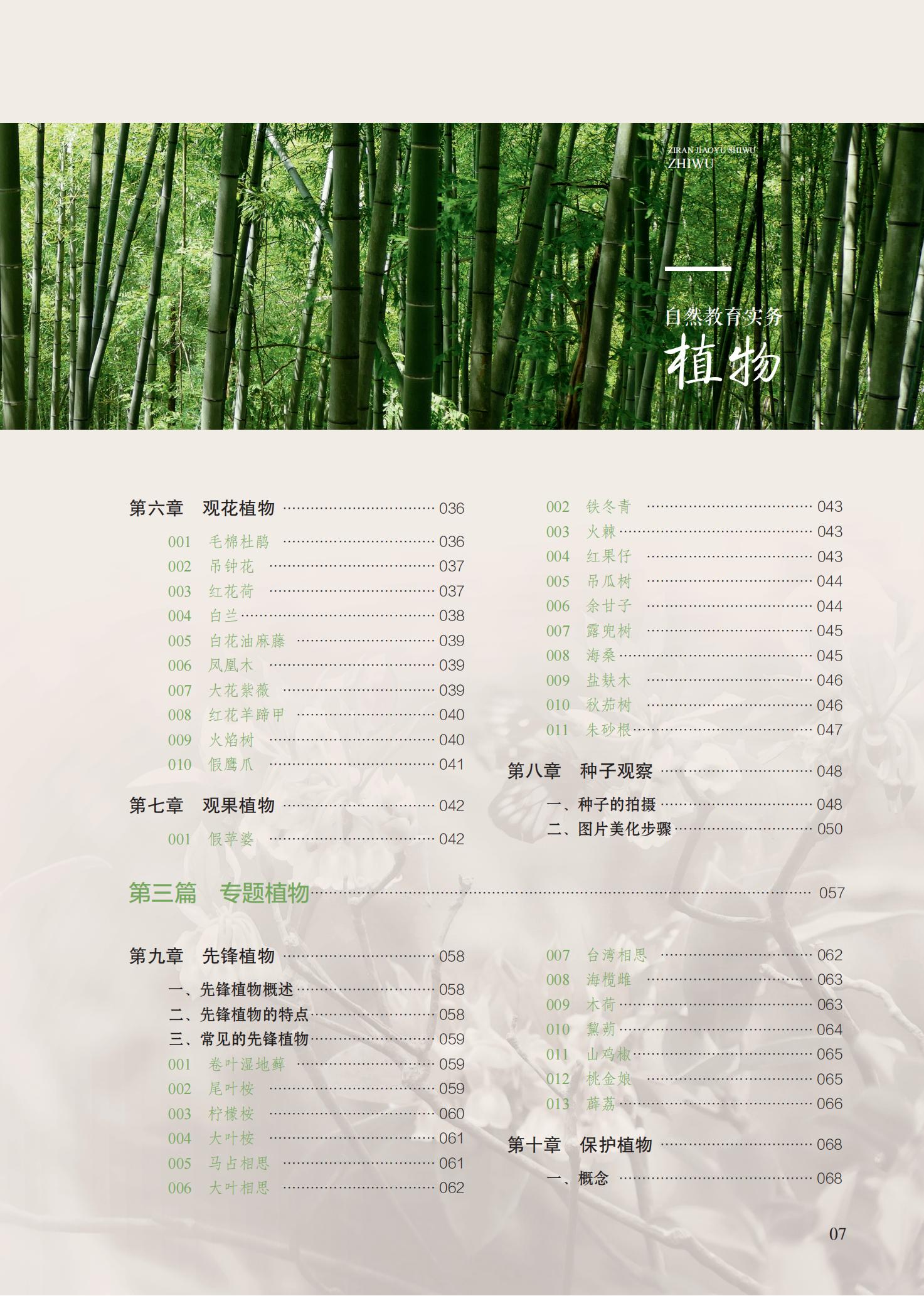 本书是作者团队总结多年导赏实践经验,结合成功案例,理论联系实际,以科学务实的态度调研编写,旨在将专业的植物学知识,植物在生活中的应用、养护,植物病虫害防治等用通俗的语言,以科学有趣的方式呈现,力求图文并茂地为老师、学生、机构从业者、自然教育基地人员等提供指导。本书让没有系统学习过植物的普通读者不再因为过多的专业术语而产生阅读上的困难,在体现专业性、科学性和趣味性的同时,更贴近大众的阅读习惯,使他们能轻松顺畅地阅读。