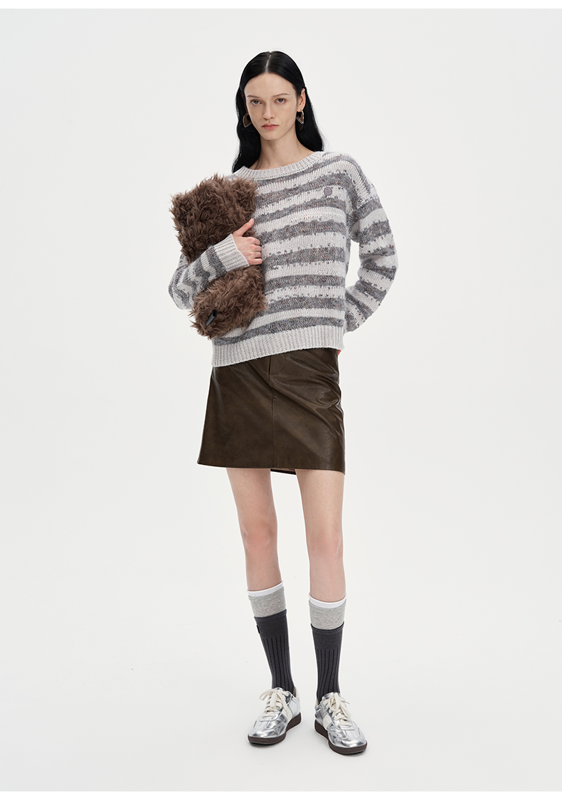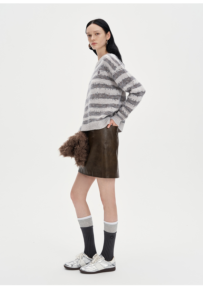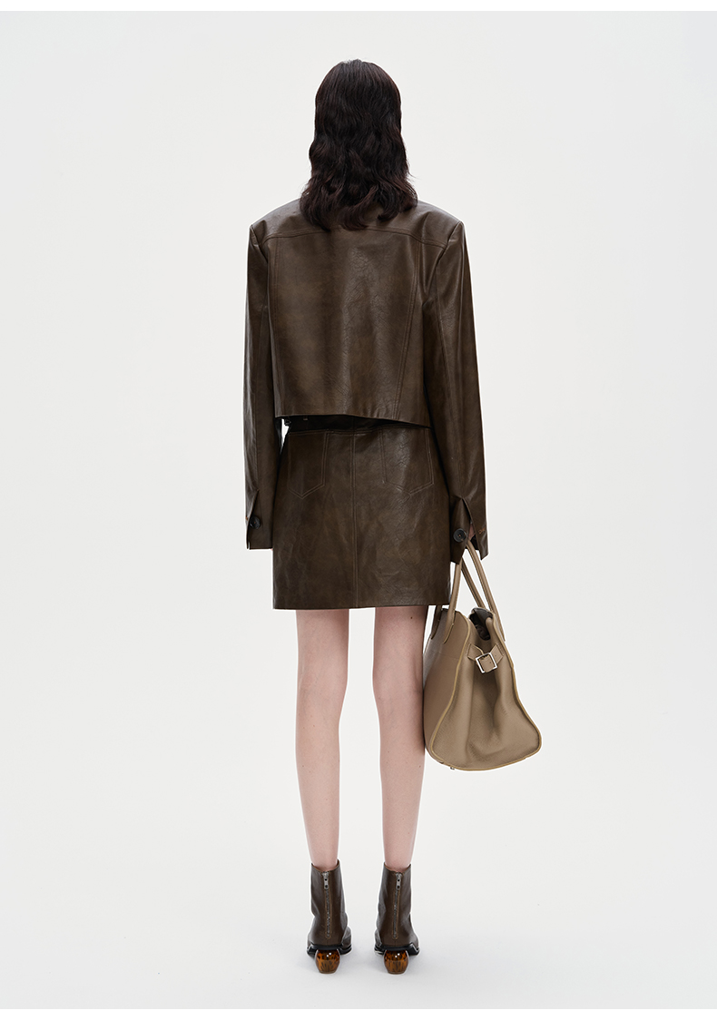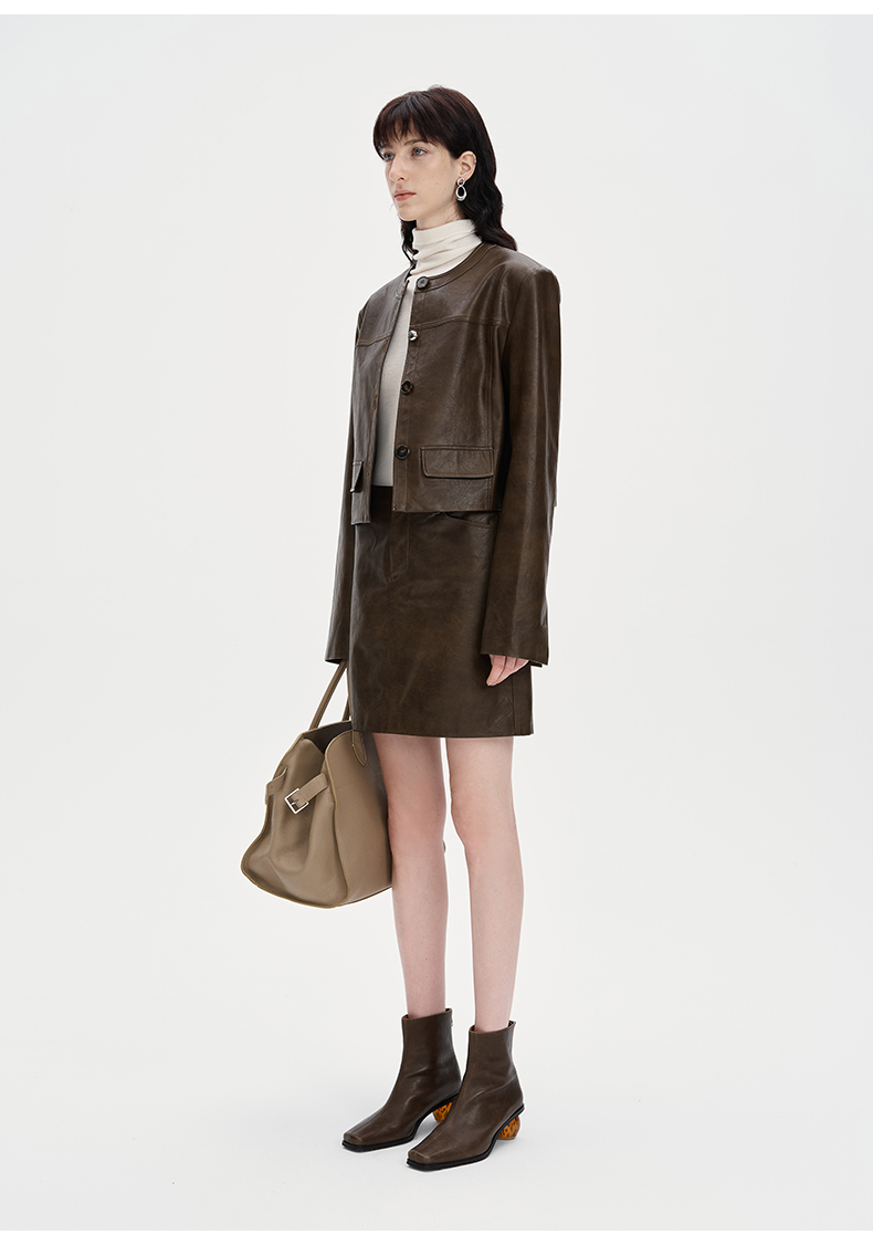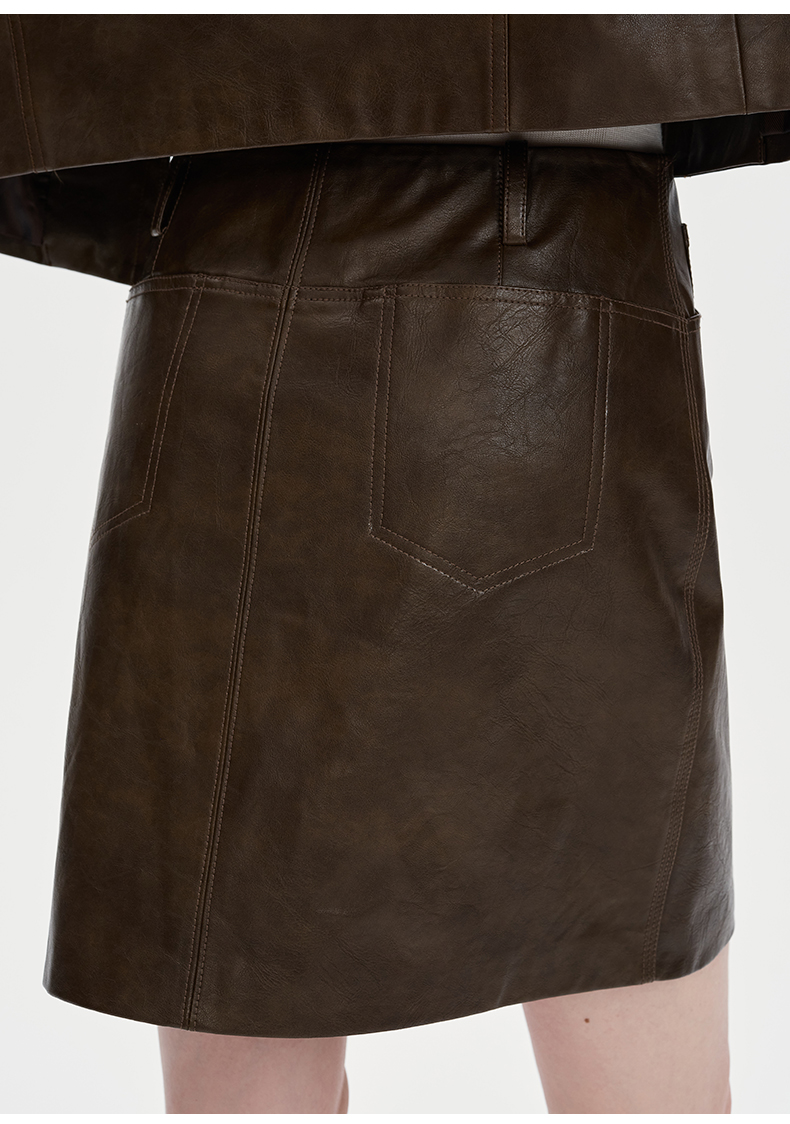 SELFWHO复古做旧直筒短裙女2024秋季新款高腰包臀显瘦短款半身裙