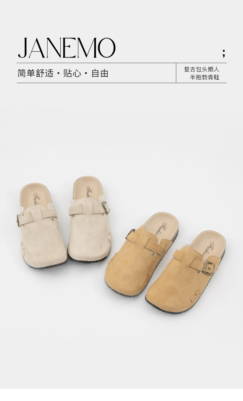 优选丨【买一赠一】茧墨 复古包头懒人半拖勃肯鞋(脚宽、脚背高拍大一码)