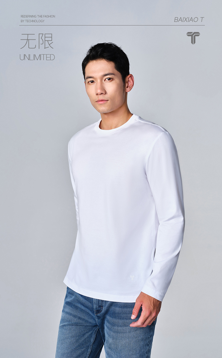 会员-拇指白小T高支压胶长袖T恤无我系列