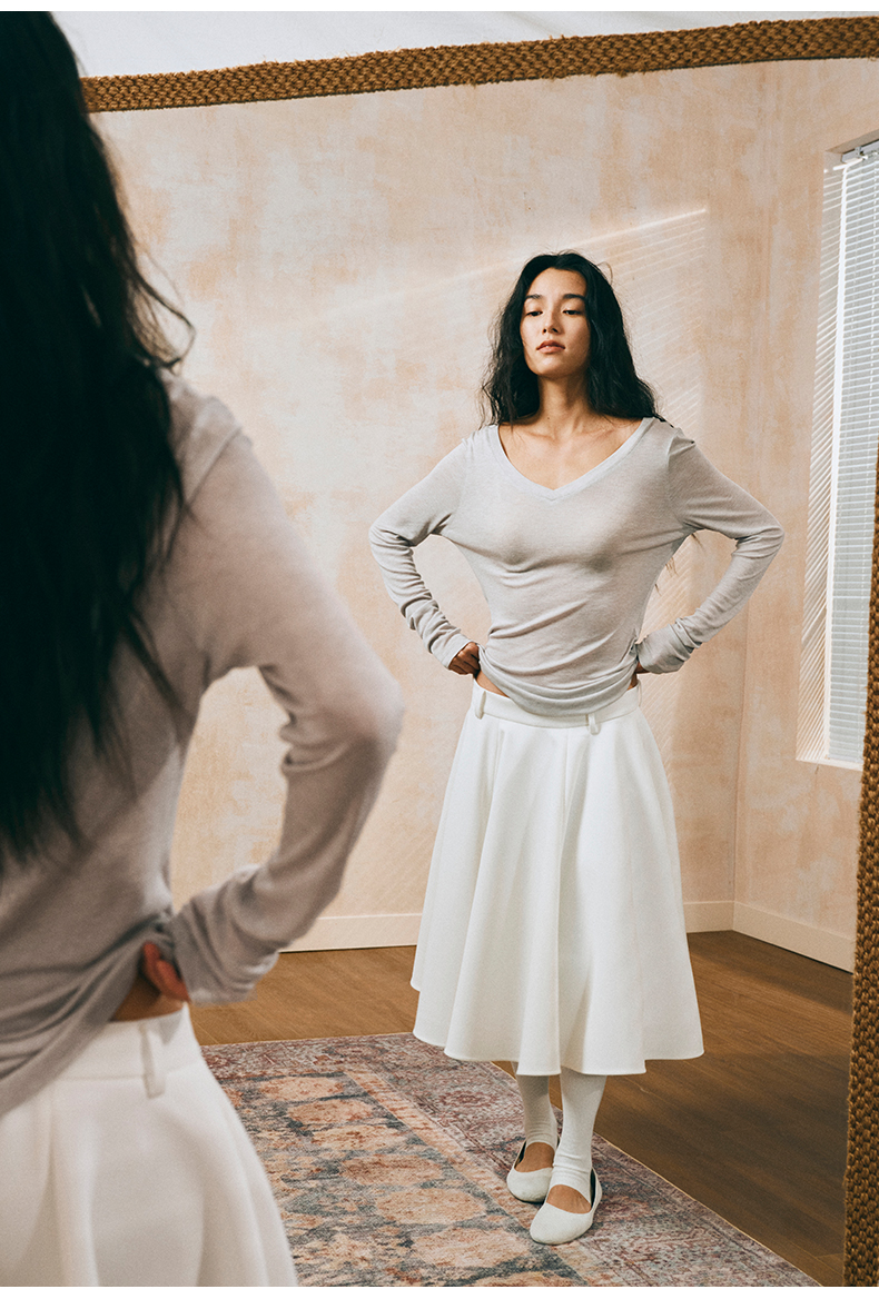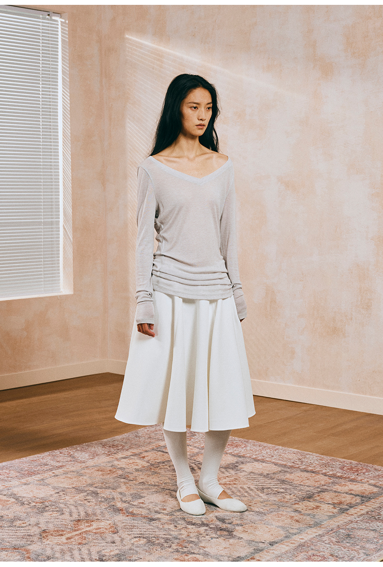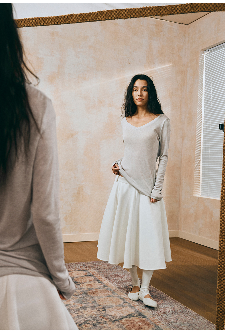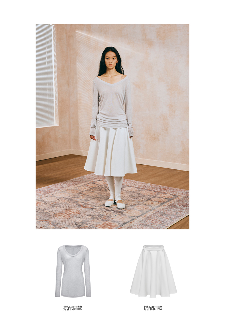 NUTH 亲肤莱赛尔修身显瘦针织打底斜领长袖打底针织上衣女