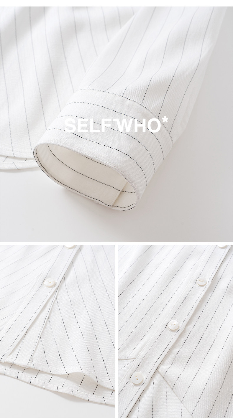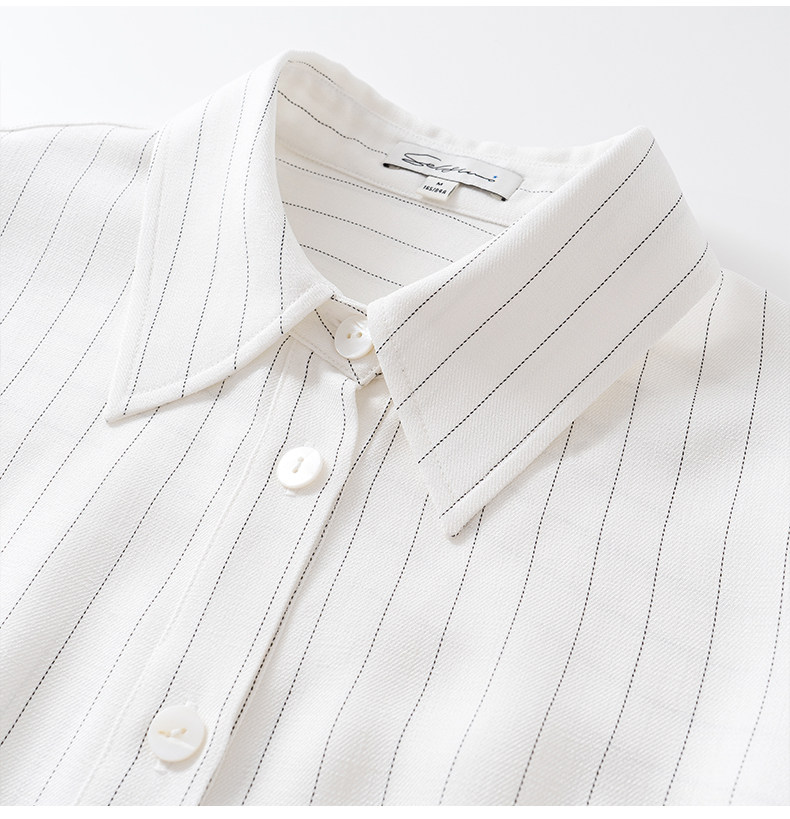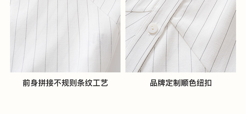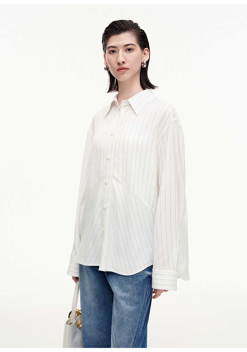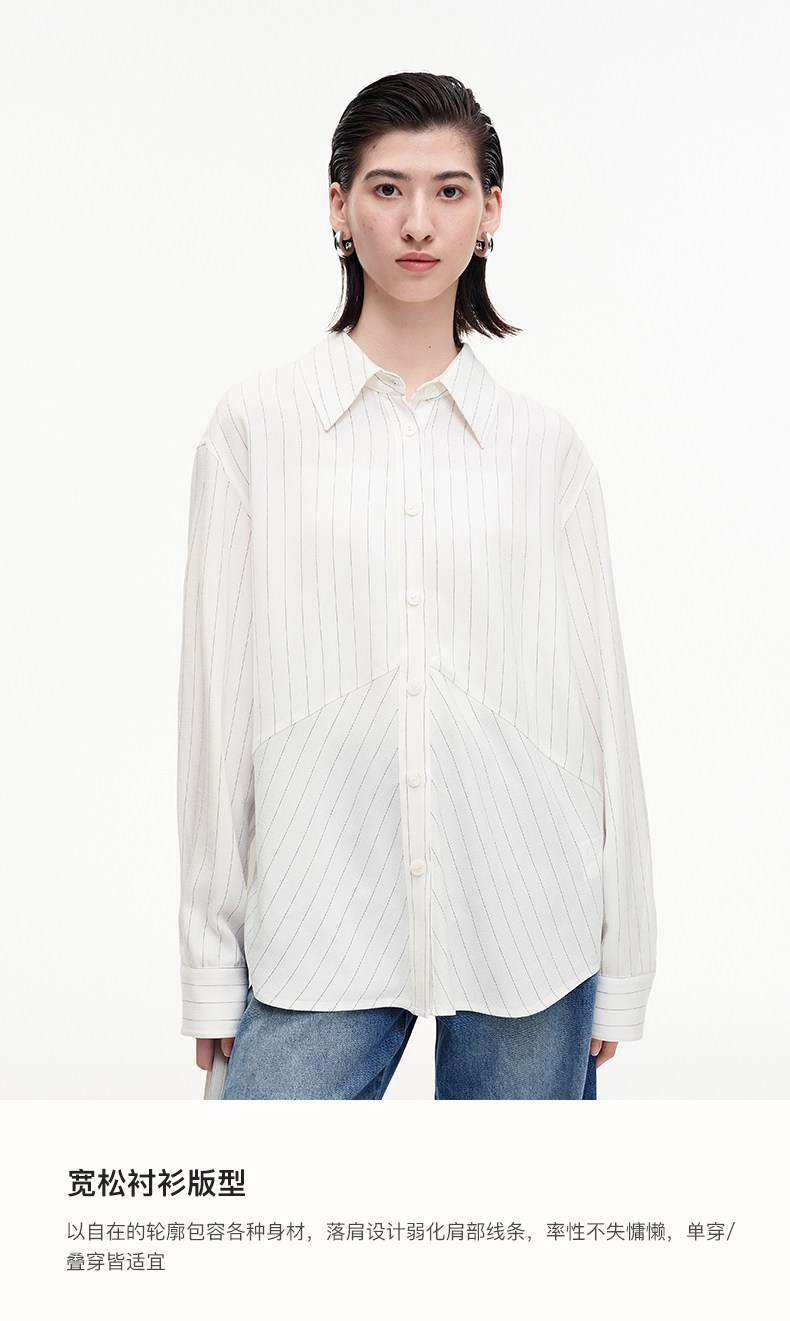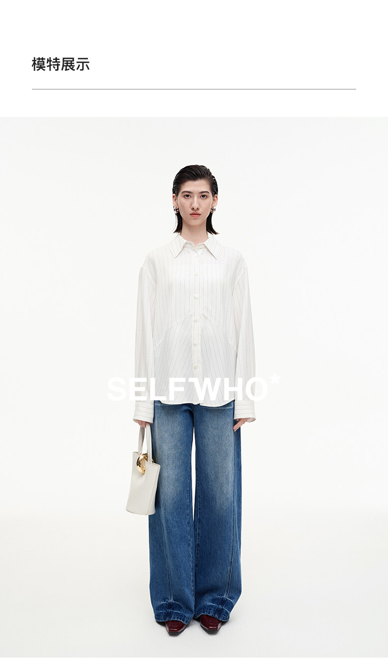 SELFWHO醋酯混纺不规则拼接条纹衬衫女2026春季新款翻领宽松上衣