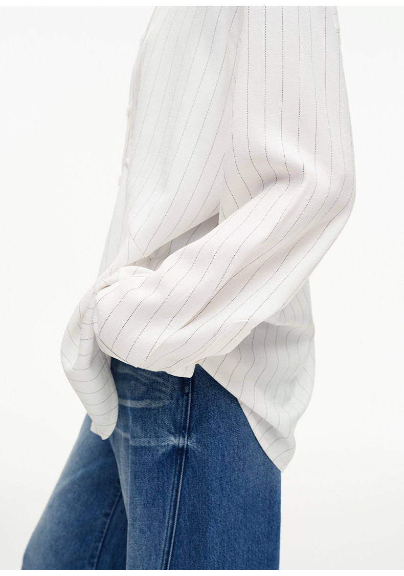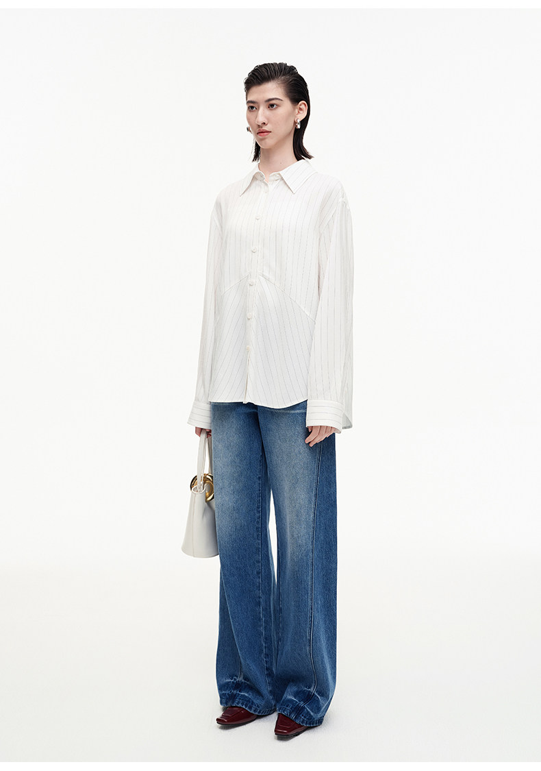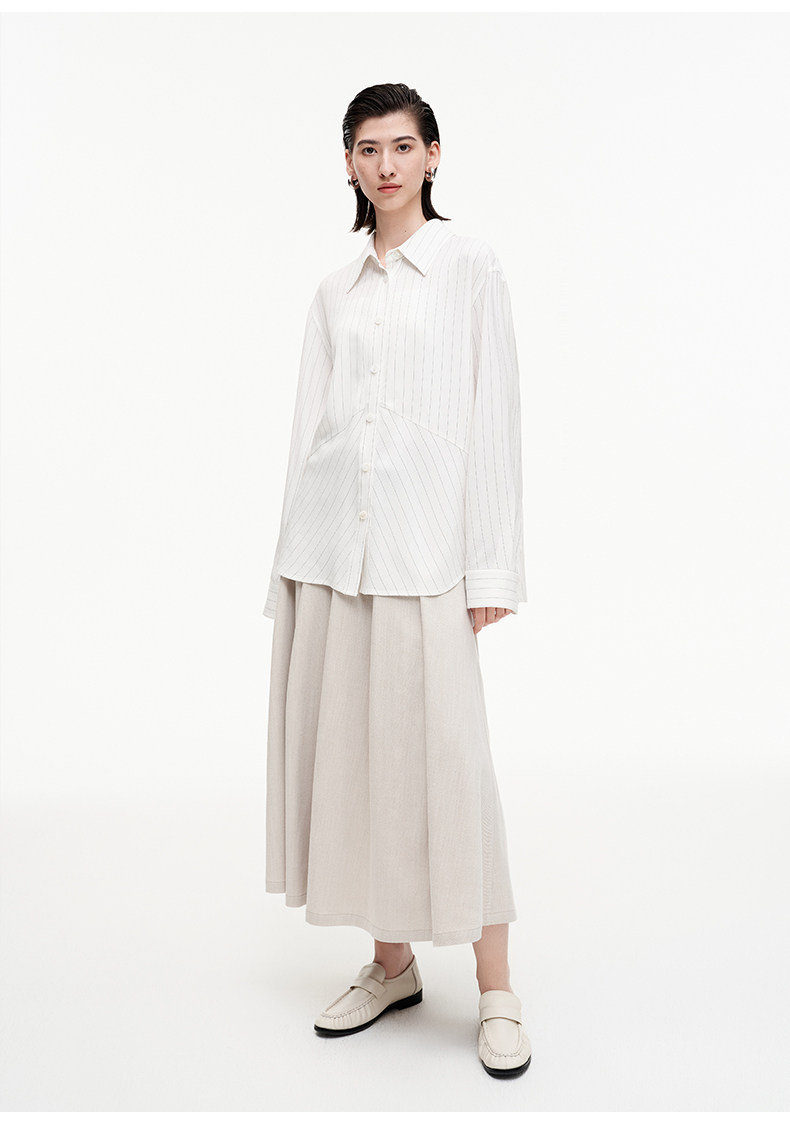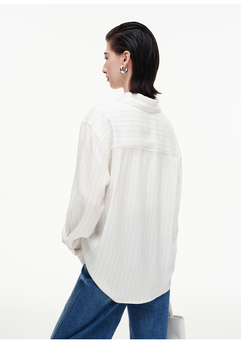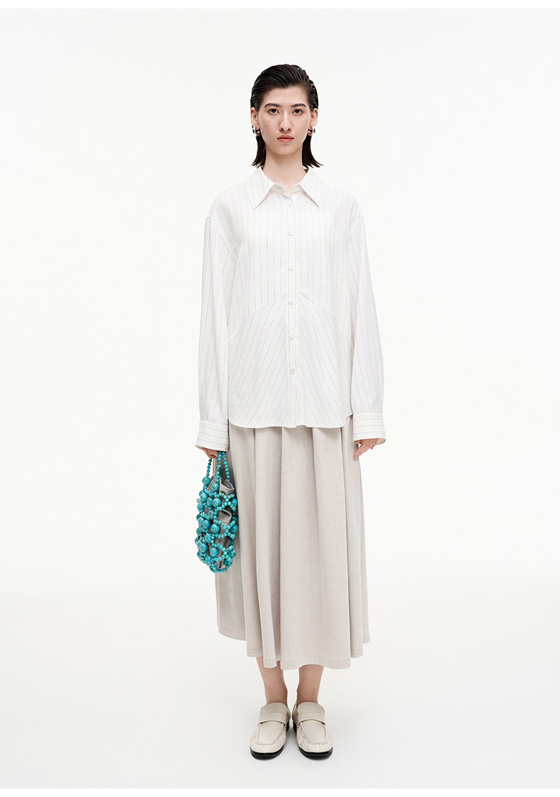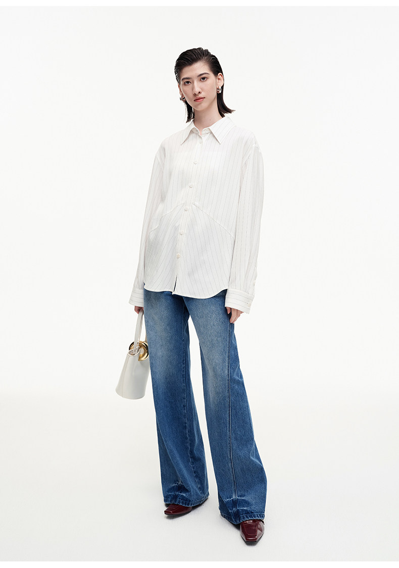 SELFWHO醋酯混纺不规则拼接条纹衬衫女2026春季新款翻领宽松上衣