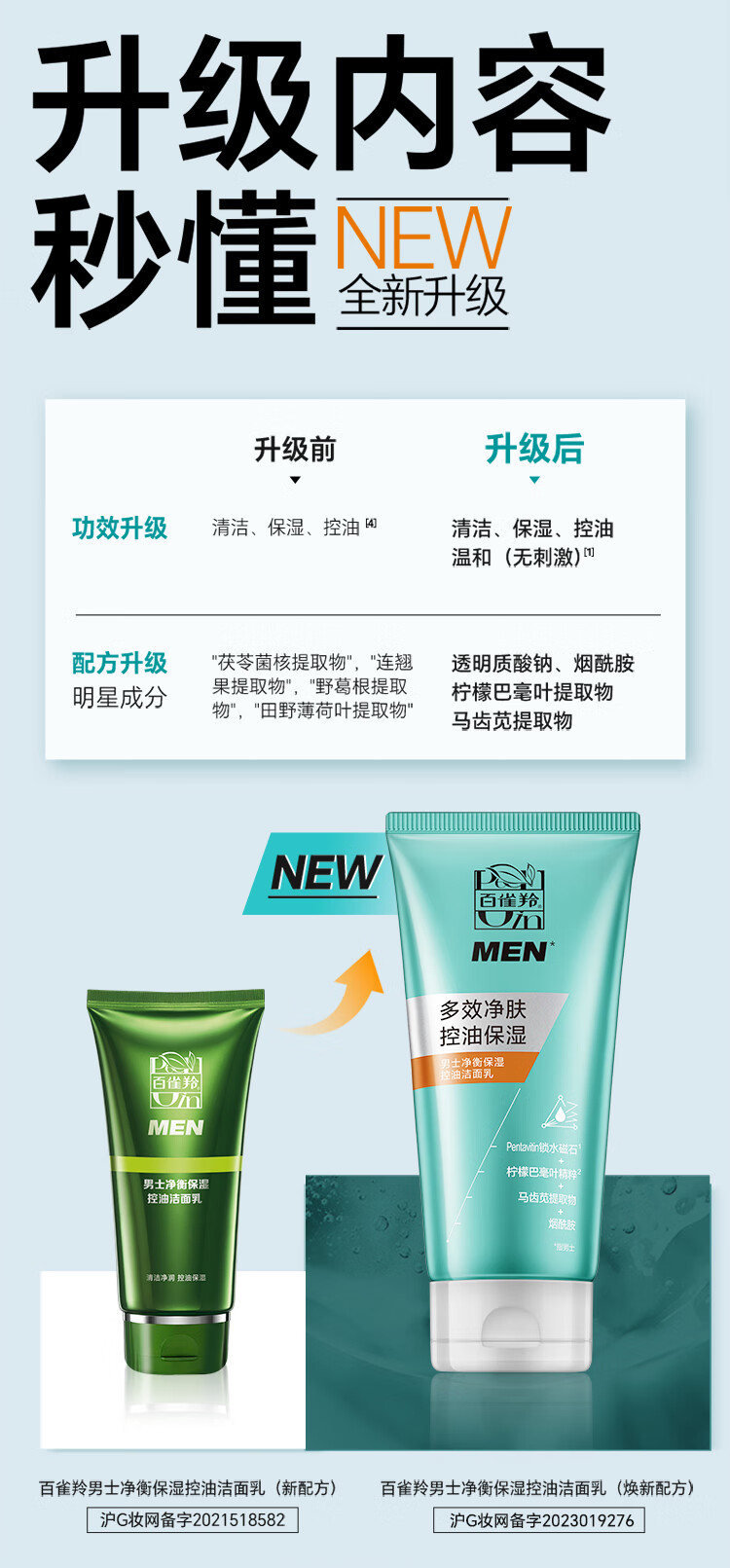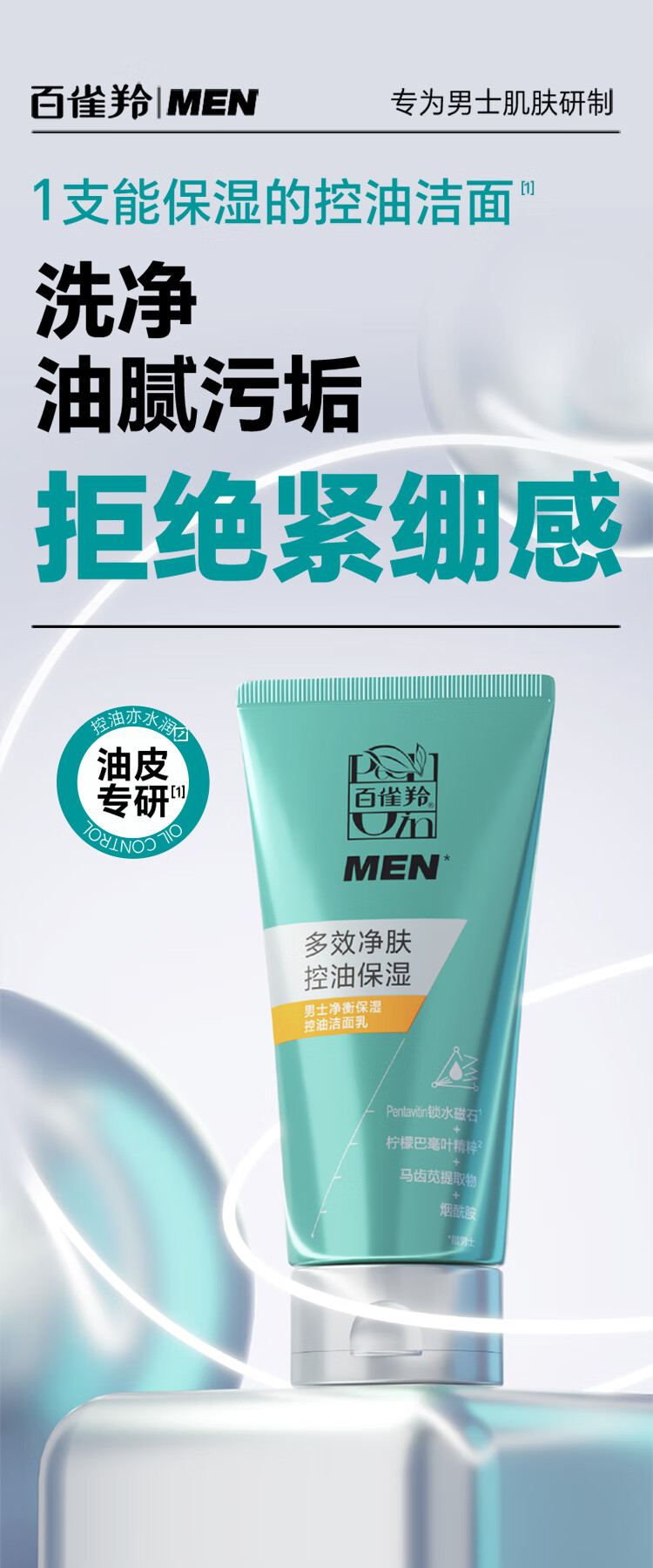 百雀羚 男士净衡保湿控油洁面乳100g 6927006120218