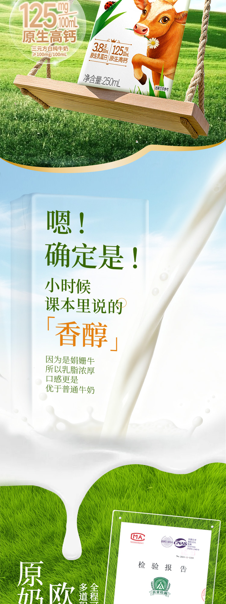 【快递到家-常温】娟姗纯牛奶 250ml*12盒