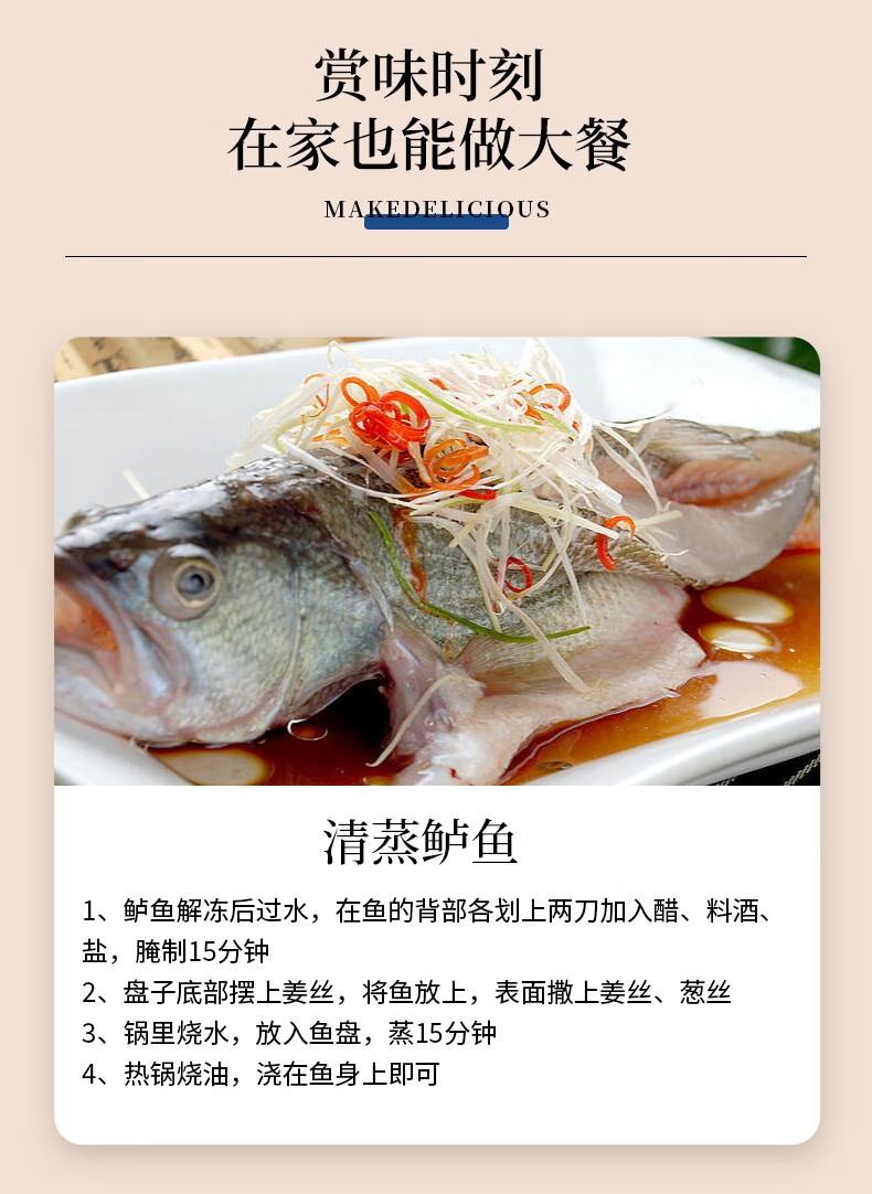 淘鲜拾光 三去开背净膛海鲈鱼 500g/条*2