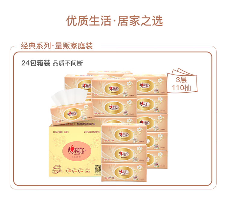 心相印 金装经典系列24包100抽3层塑装纸面巾 DT55100