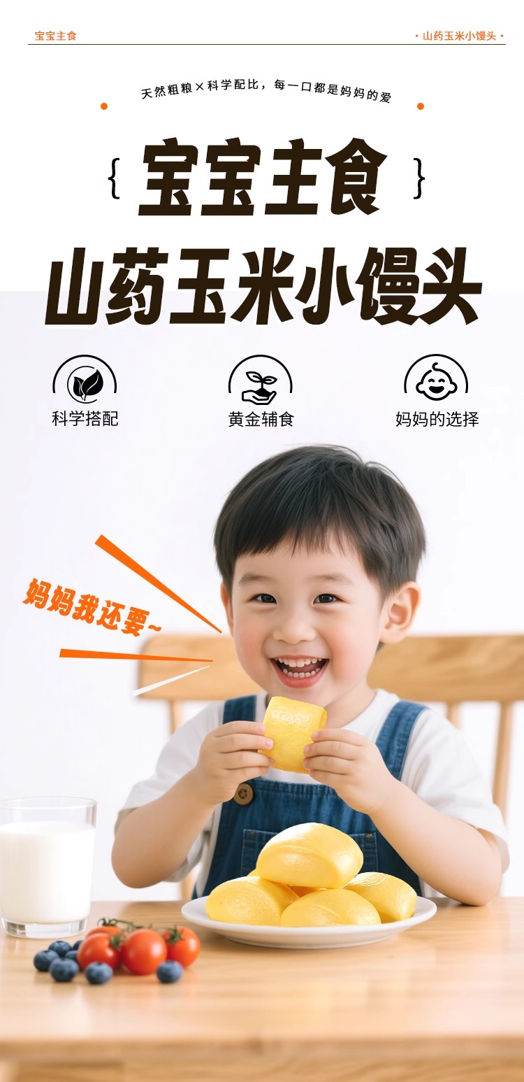 山药玉米小馒头500g/袋 山药+玉米双重营养 蓬松暄软才好吃