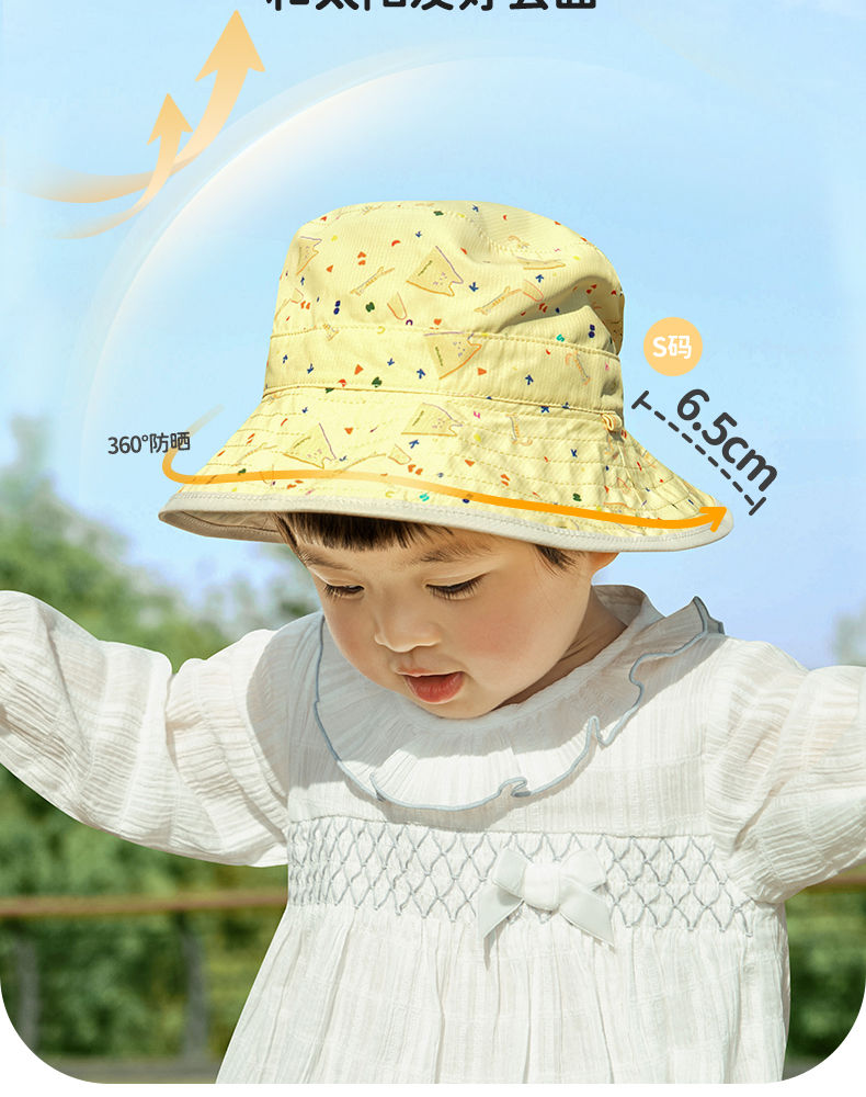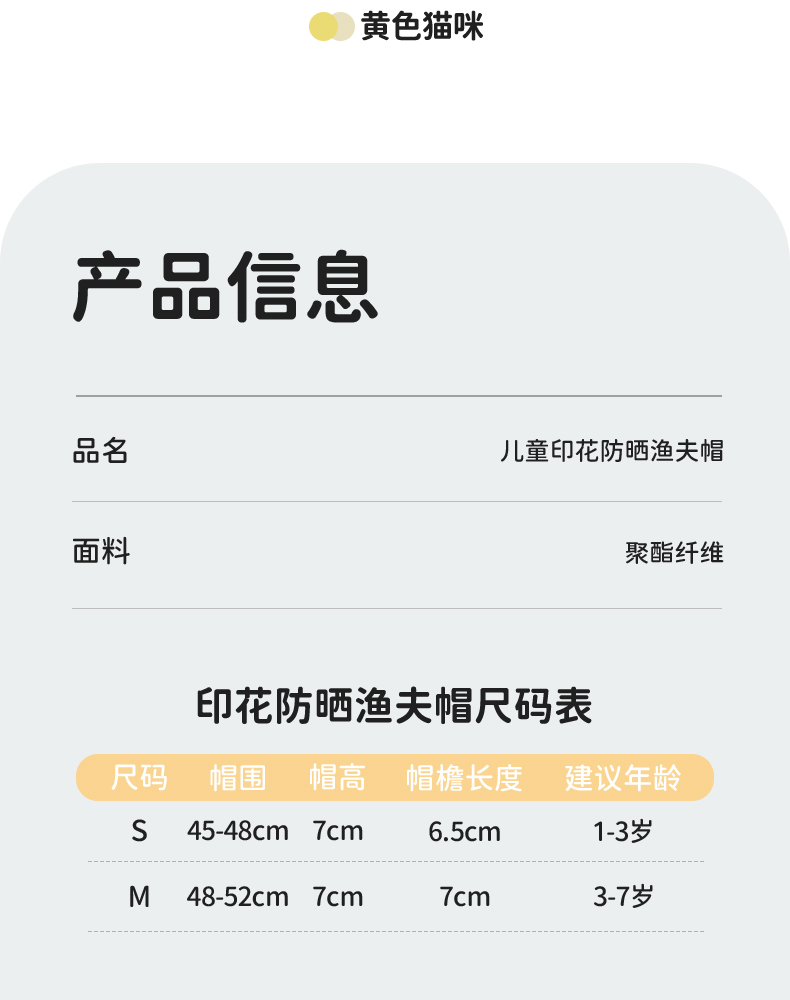shukiku 儿童印花防晒渔夫帽 黄色猫咪 M码(45-52cm)建议3-5岁