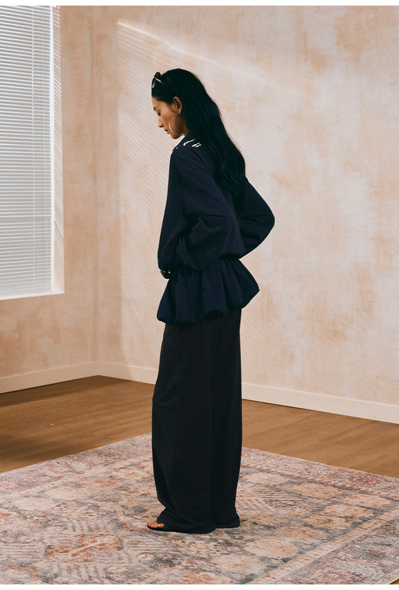 NUTH多口袋松紧腰运动裤宽松直筒百搭休闲裤女