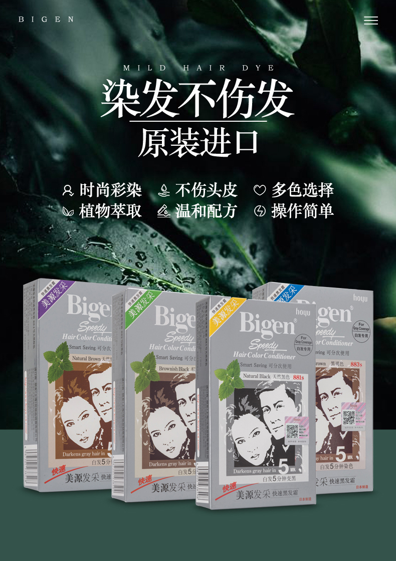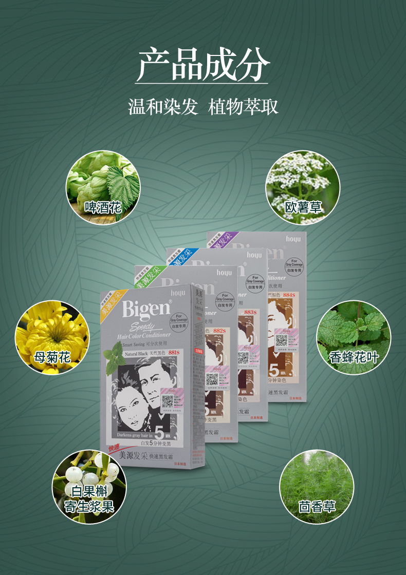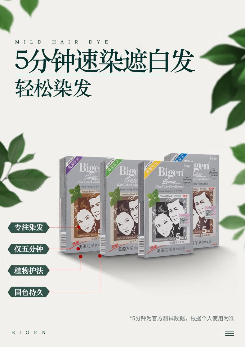 【保税仓】HOYU/美源男士快速染发霜遮盖白发染发膏黑褐色D80g/盒