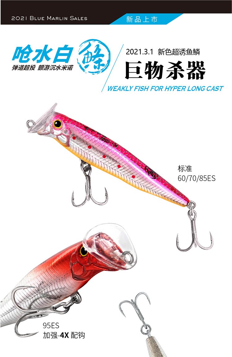 蓝旗鱼呛水白条白鲦远投沉水米诺全泳层翘嘴鲈鱼鱤鱼军鱼路亚假饵