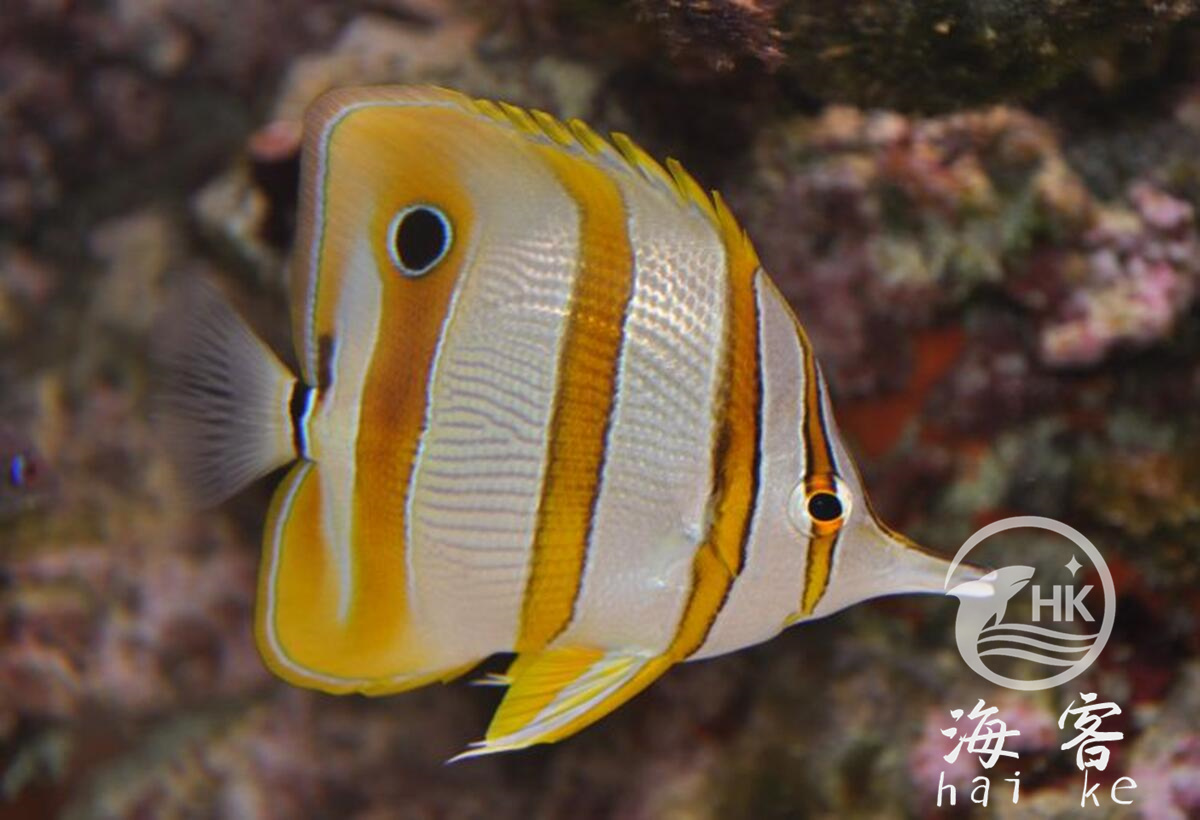 也叫毕毕、钻嘴鱼。有一个细长的嘴用以捕食岩石缝及洞里的食物。白色的身体带有橘黄色垂直条纹,条纹戴黑边。在背鳍上有一眼点用以迷惑敌人。跟其他蝶鱼有很大区别,很好辨别。