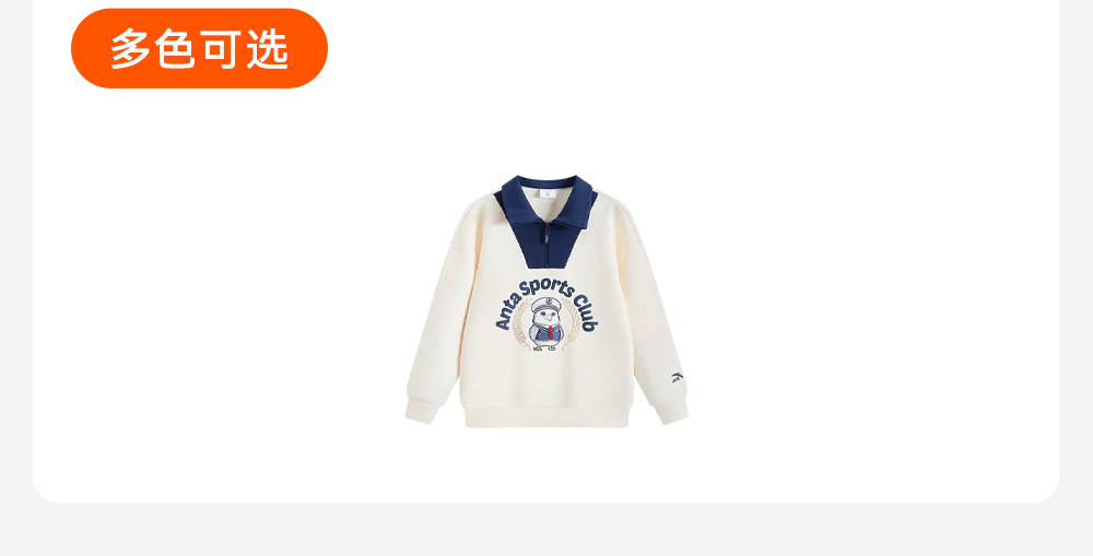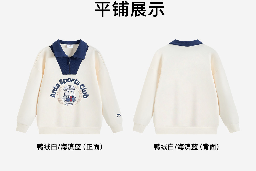 安踏儿童男小童针织套头衫2026年新款舒适亲肤儿童翻领休闲卫衣潮352629702