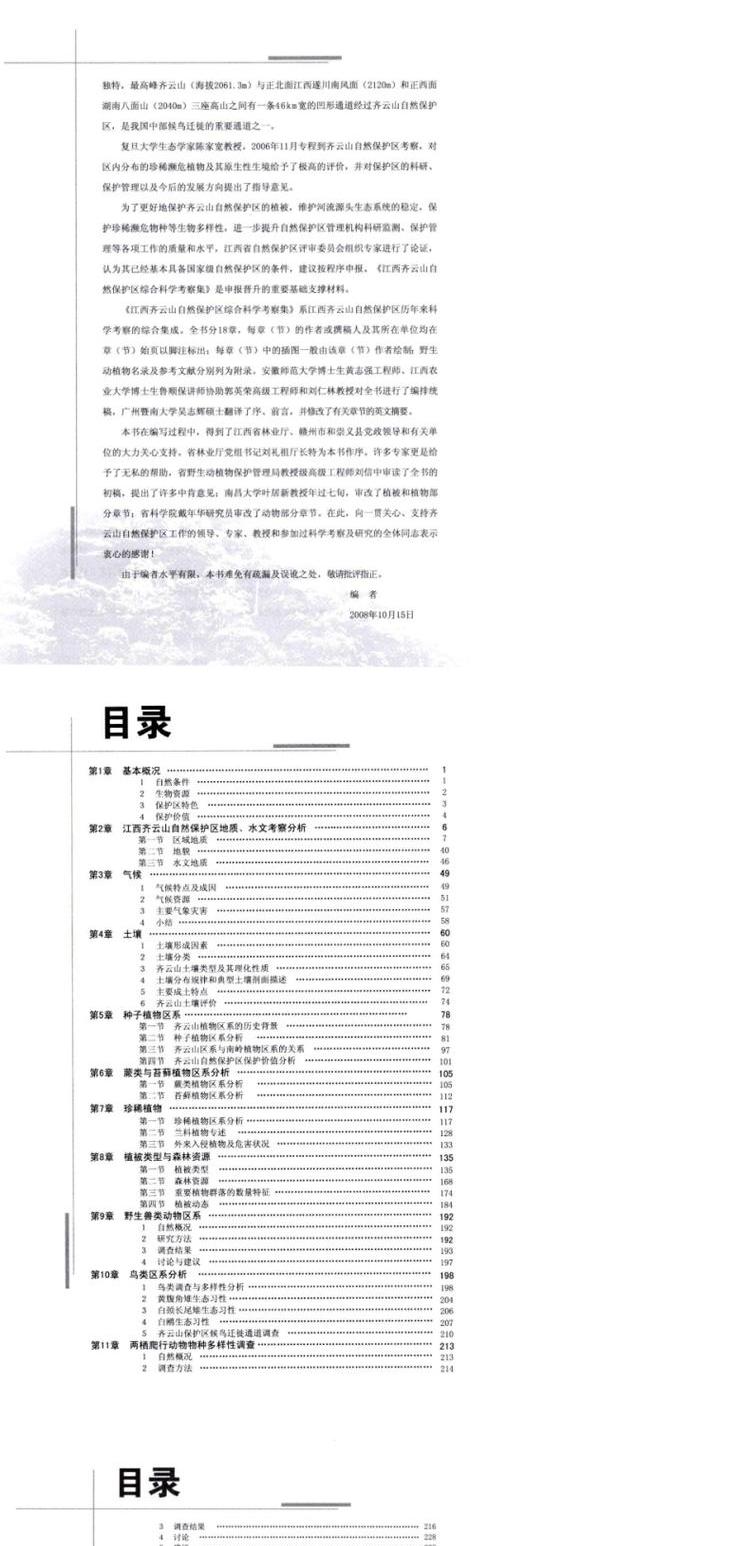 江西齐云山自然保护区综合科学考察集 5804 气候 土壤 种子植物 蕨类 苔藓 珍惜植物 植被类型 森林资源 自然保护 中国林业出版社