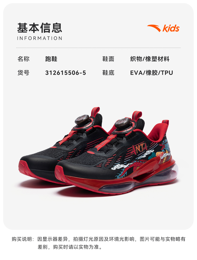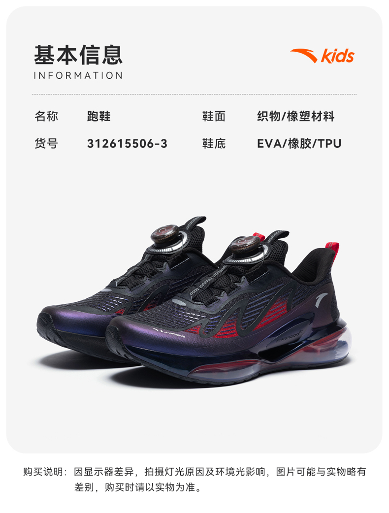 蓄能仓3新年款安踏儿童男大童跑鞋2026年新款中大童旋钮扣运动鞋312615506