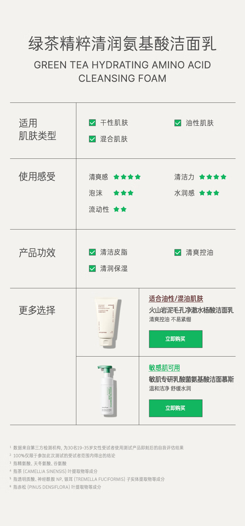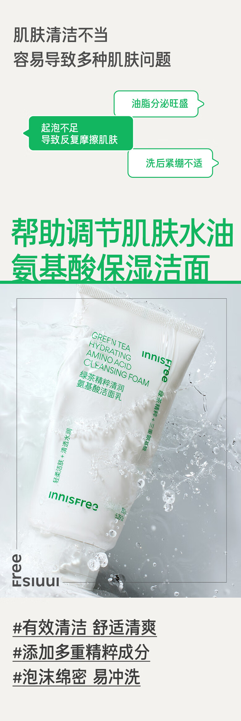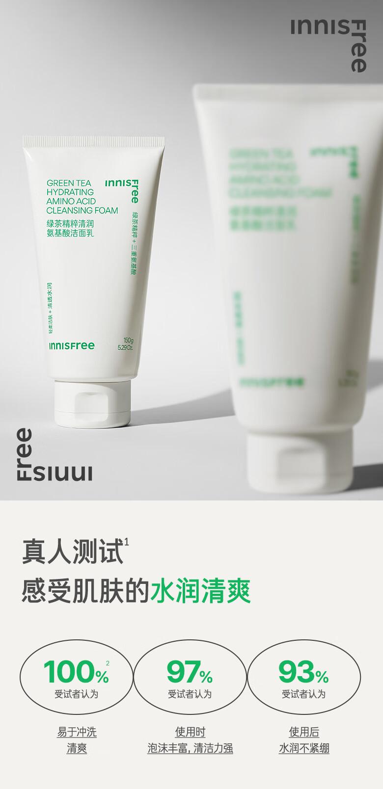 悦诗风吟 绿茶精粹氨基酸洁面乳轻柔洁肤洗面奶150ml/支