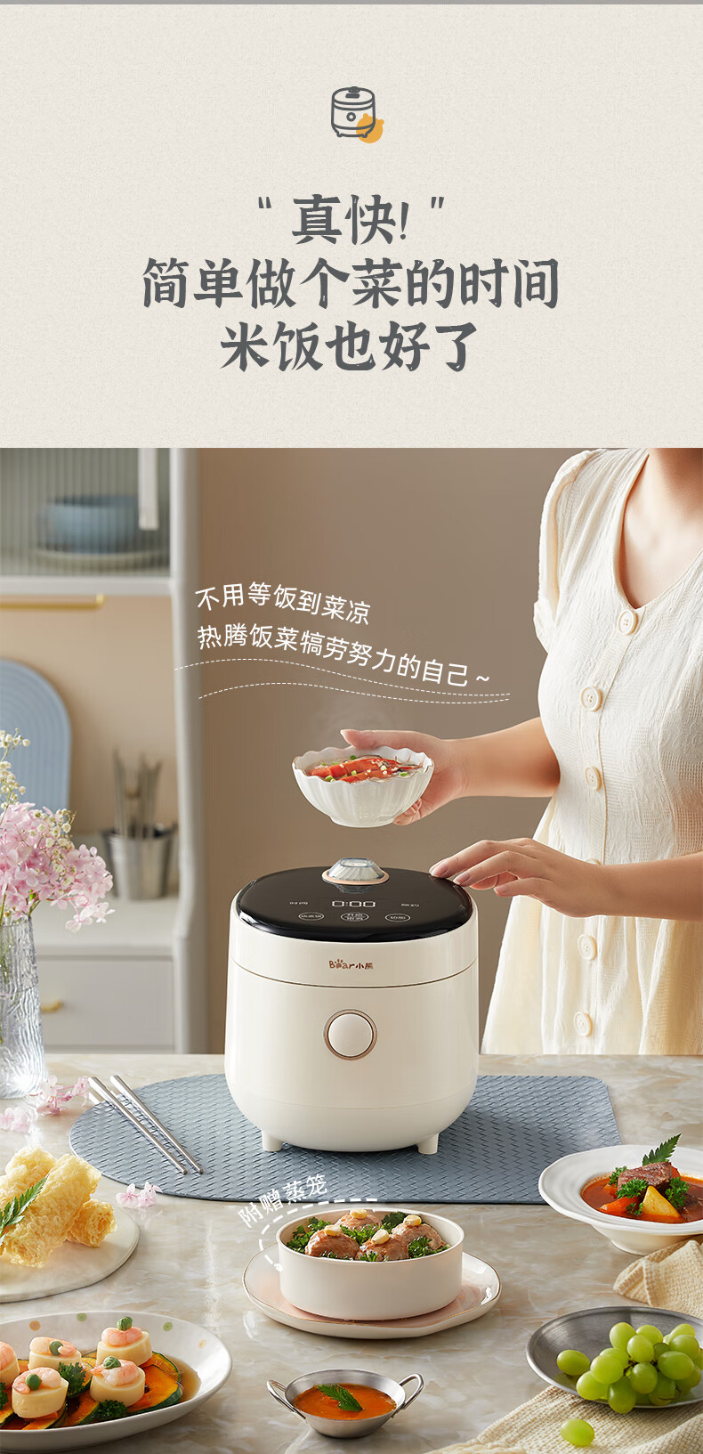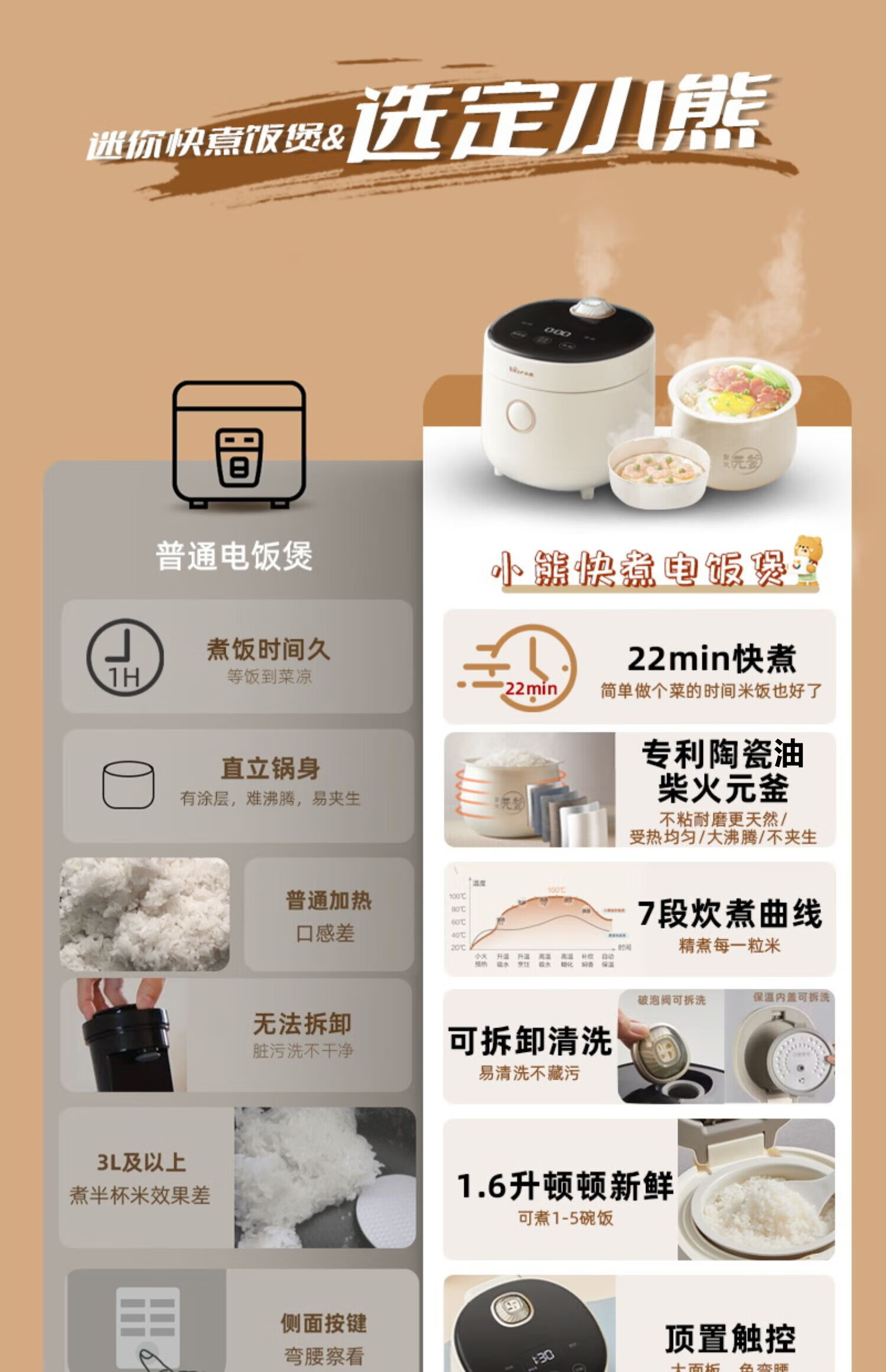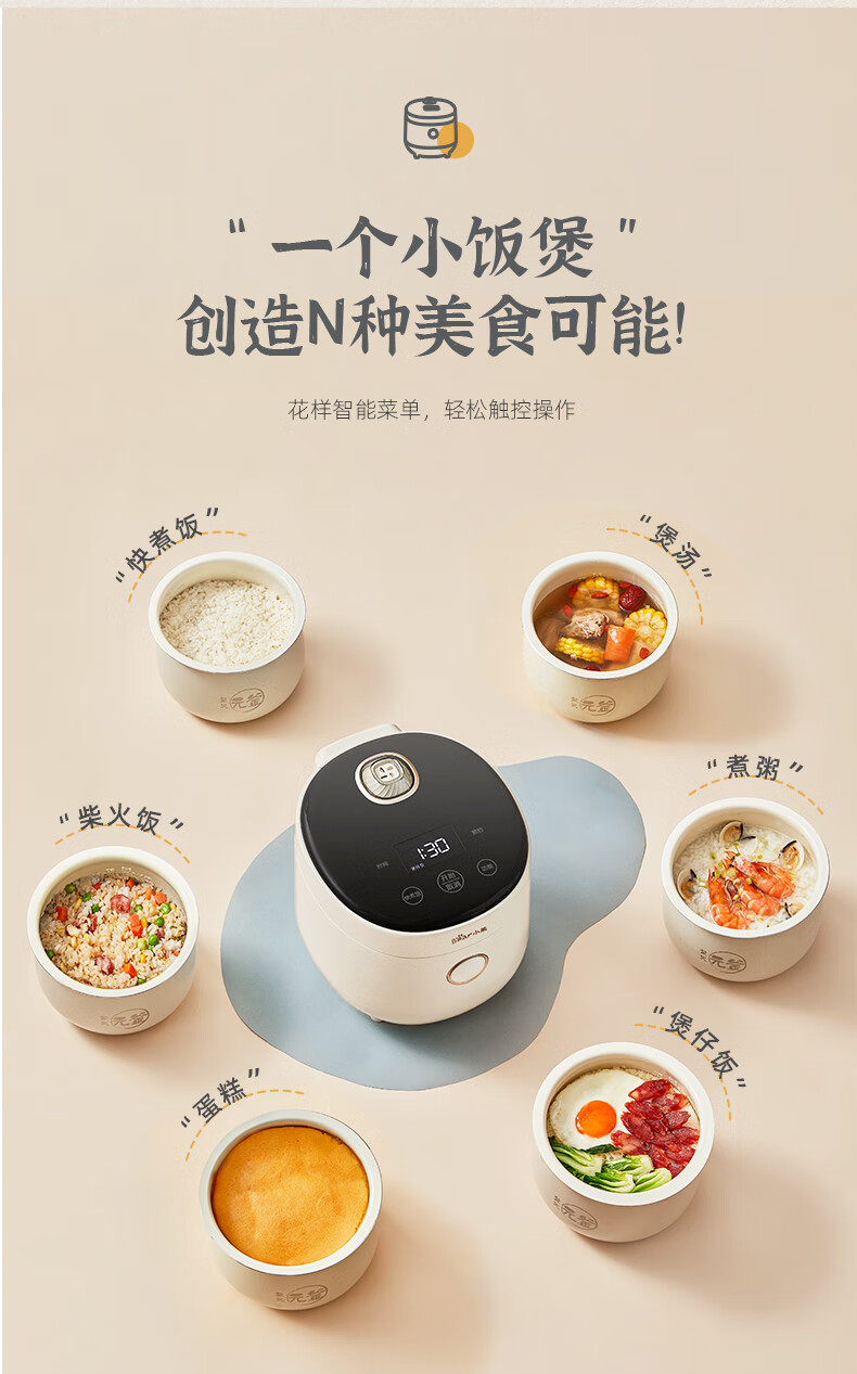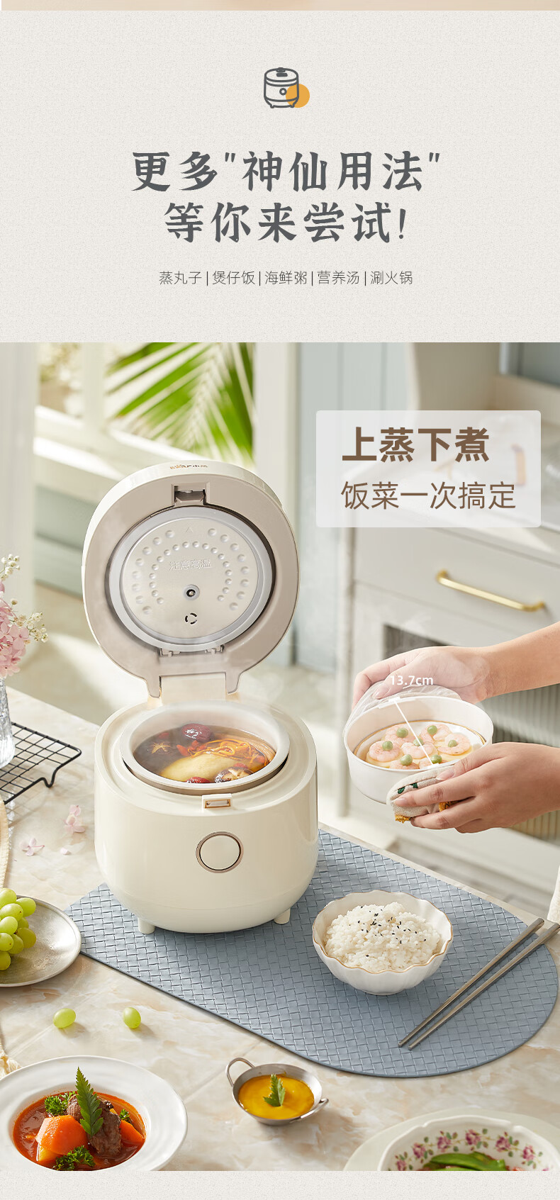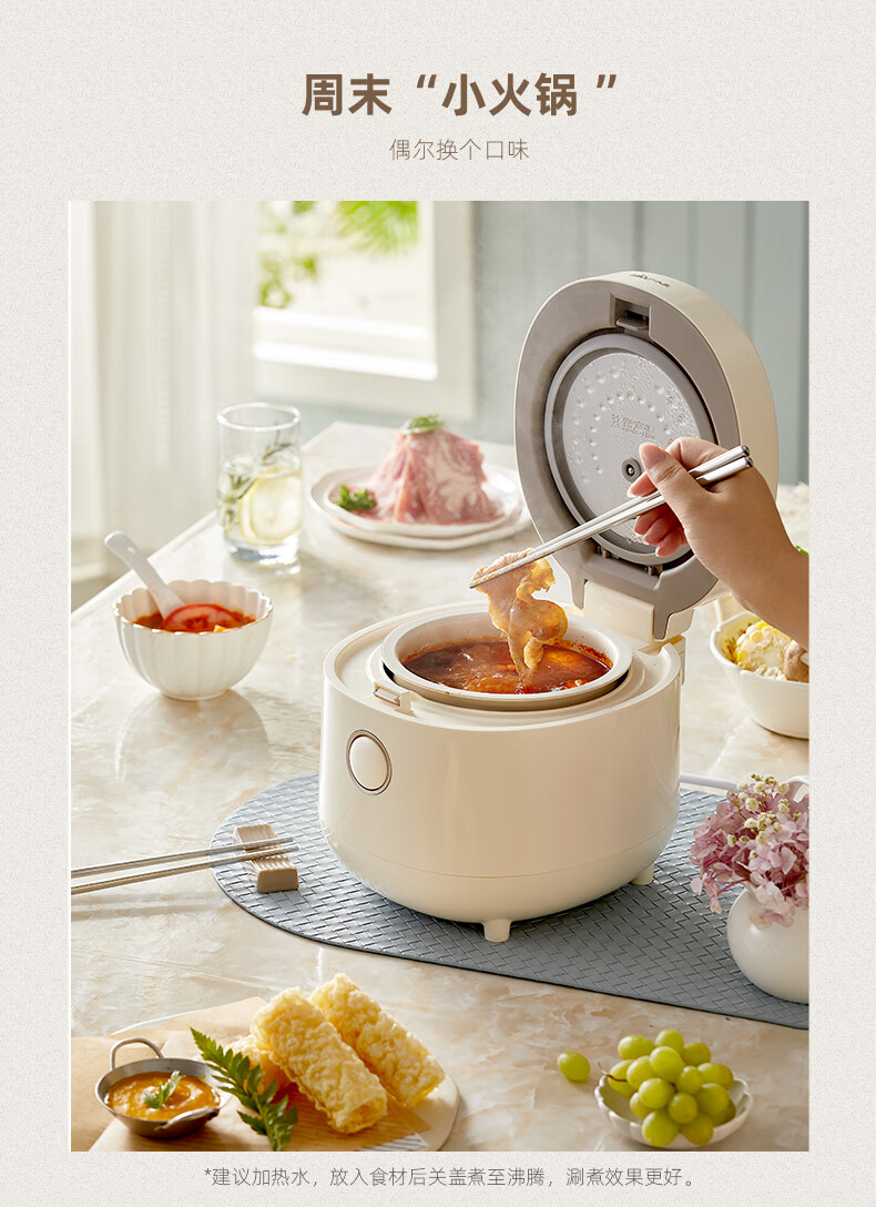 积分免费兑:小熊(Bear)电饭煲 电饭锅迷你家用小容量一键快煮饭多功能预约定时配蒸笼1.6L蒸饭器小型小2人 DFB-C16K1