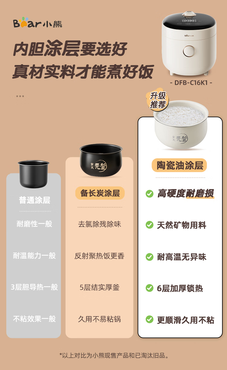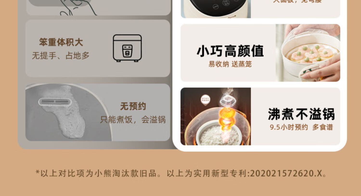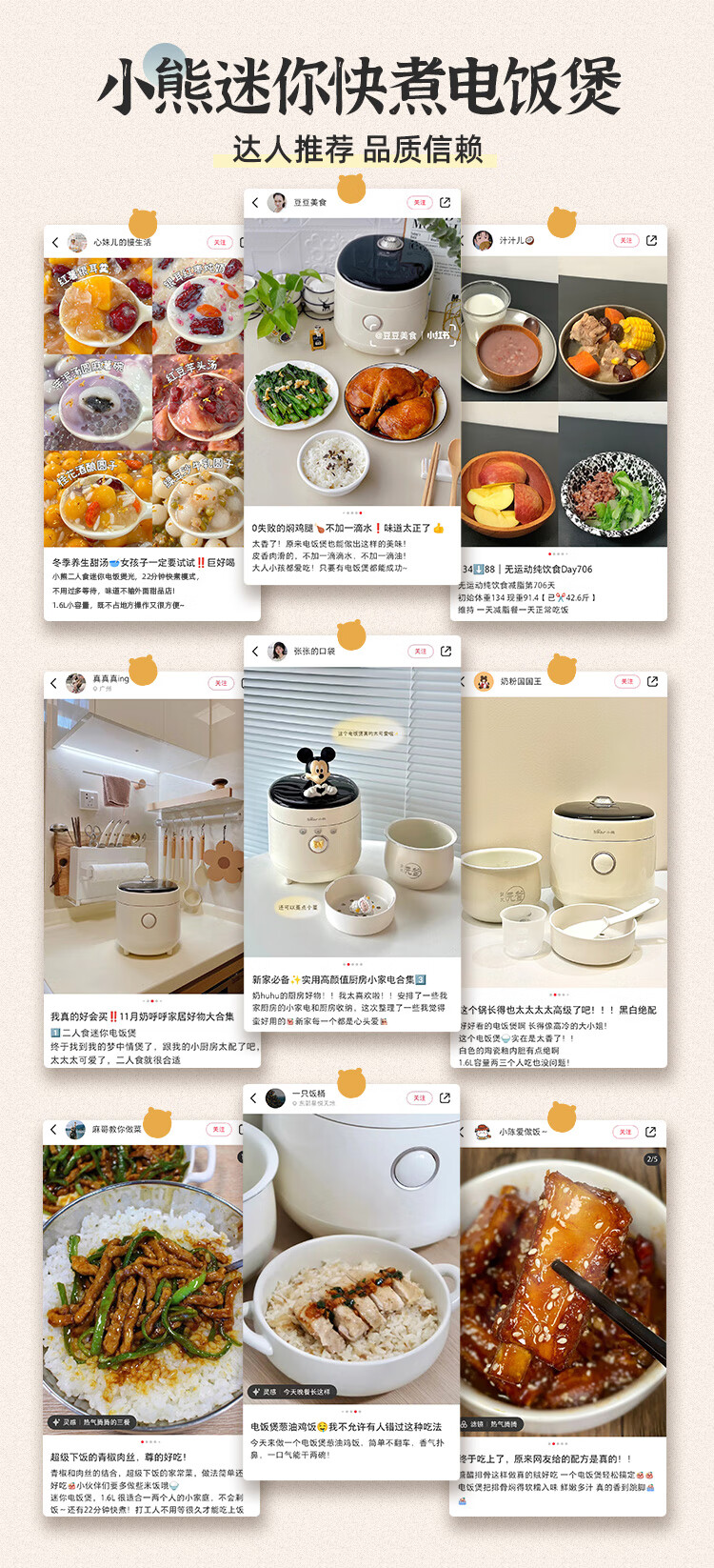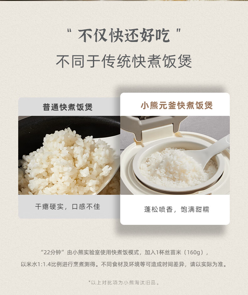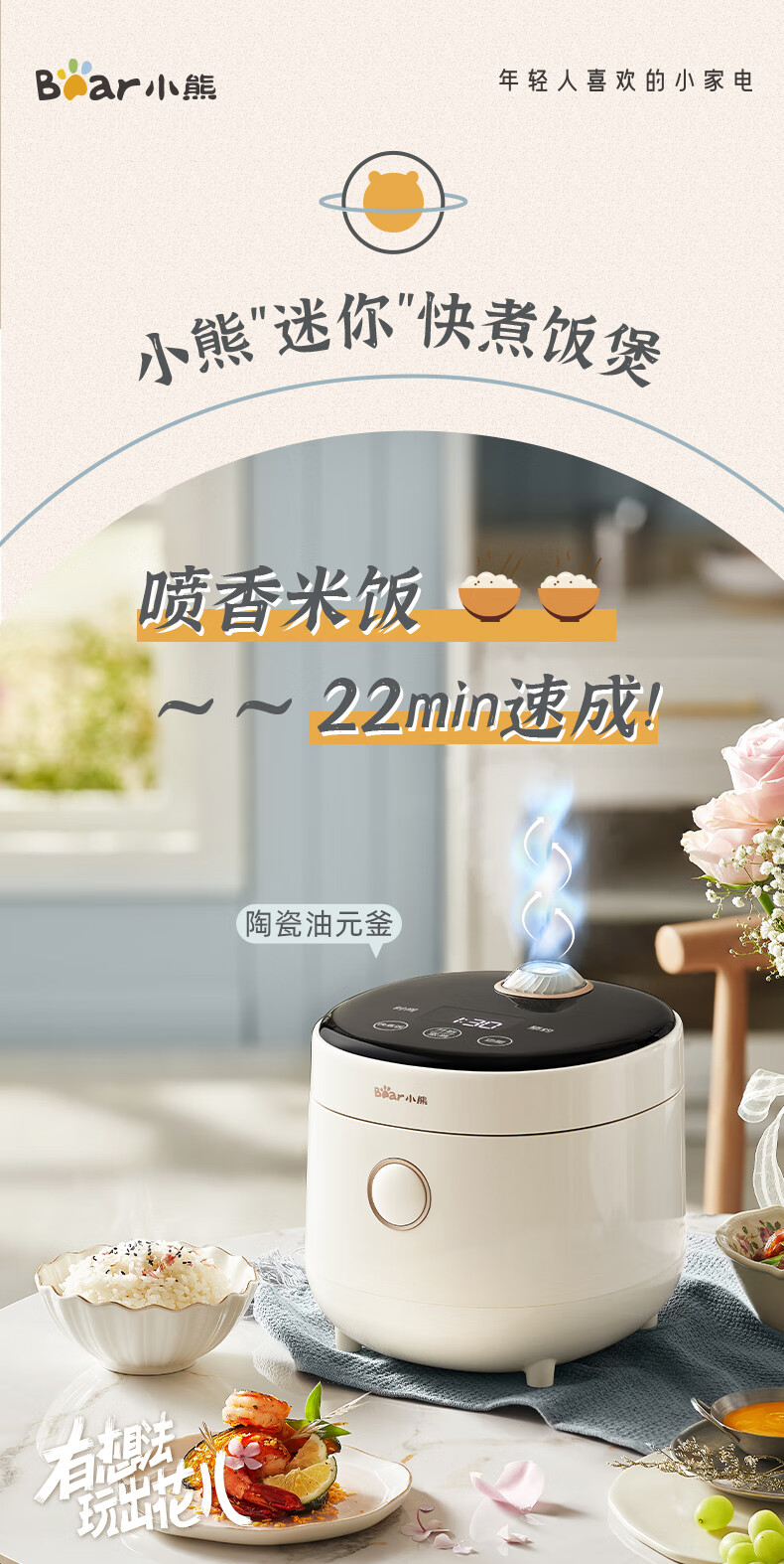 积分免费兑:小熊(Bear)电饭煲 电饭锅迷你家用小容量一键快煮饭多功能预约定时配蒸笼1.6L蒸饭器小型小2人 DFB-C16K1