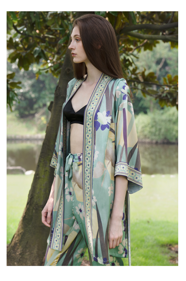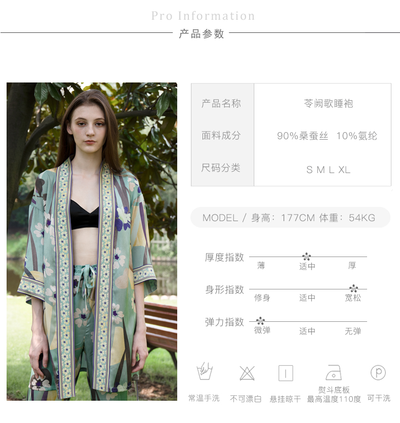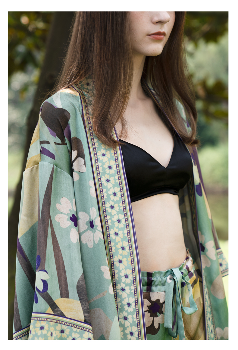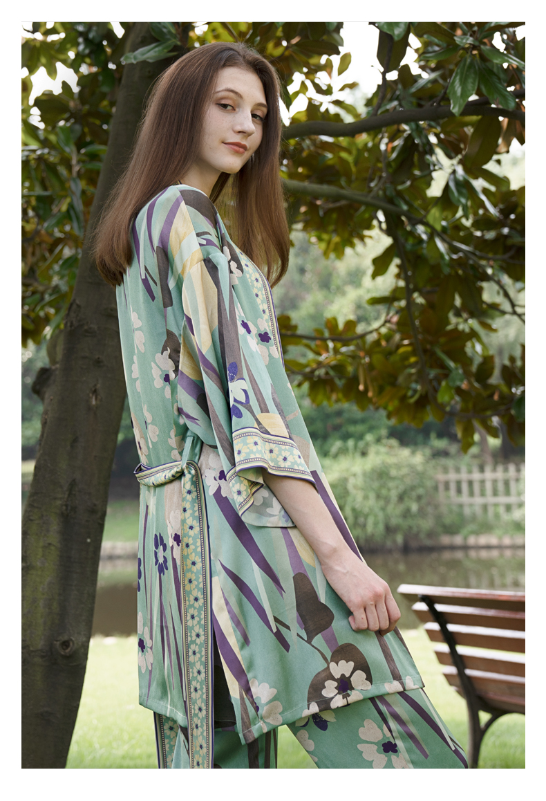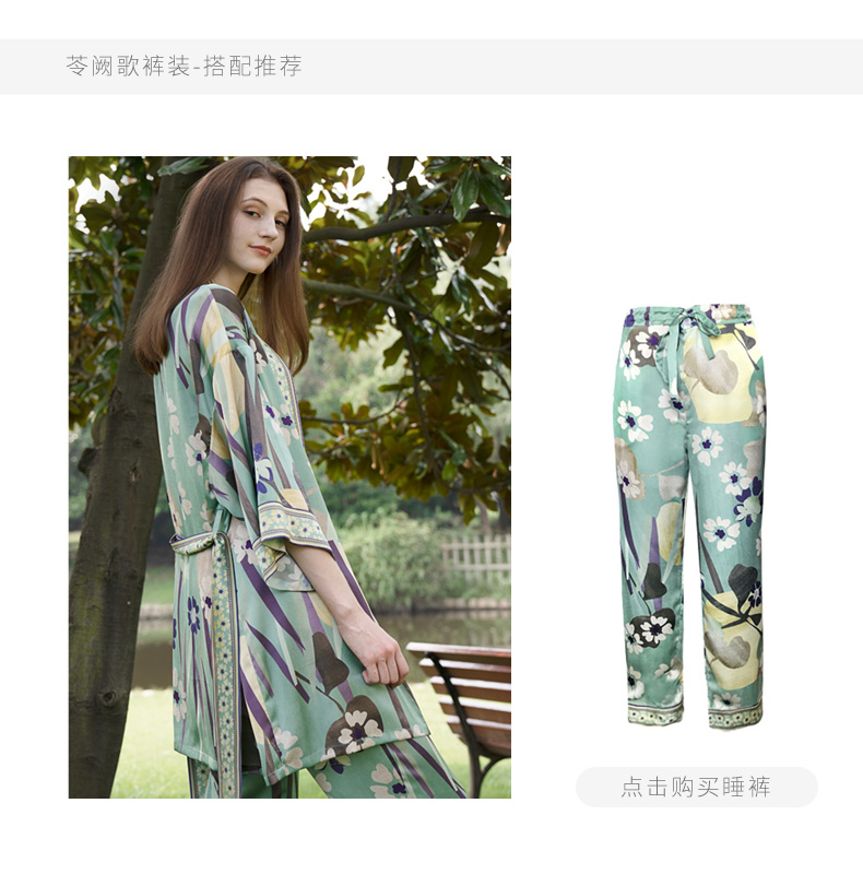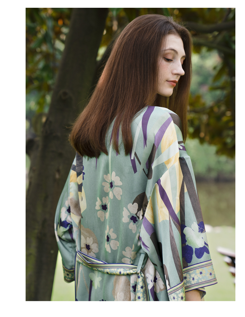 Solo seta桑蚕丝睡袍女外穿风中长款睡衣晨袍印花丝绸家居服秋冬