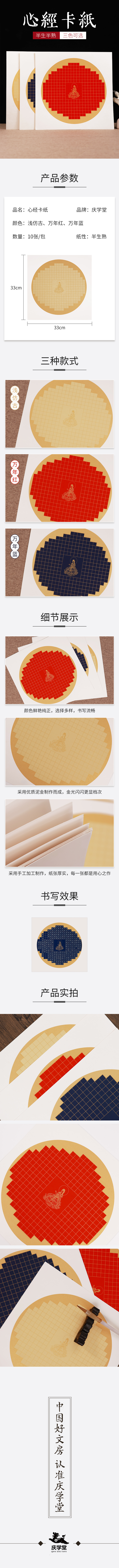 【庆学堂】33*33心经卡纸 粉彩宣纸抄写卡纸 带格子 加厚