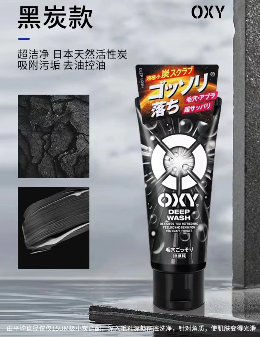 【保税仓】ROHTO/乐敦男士洗面奶黑色木炭清洁毛孔磨砂型130g/支