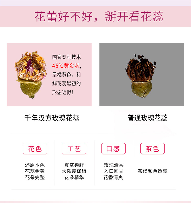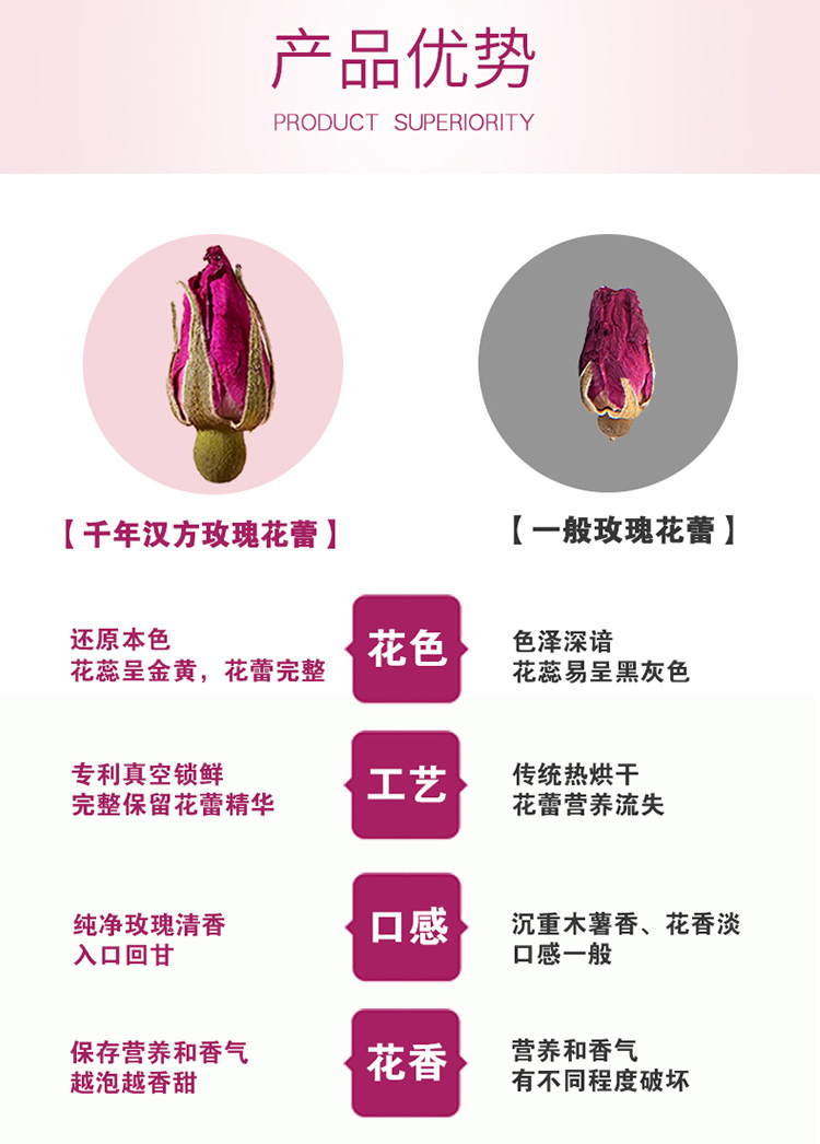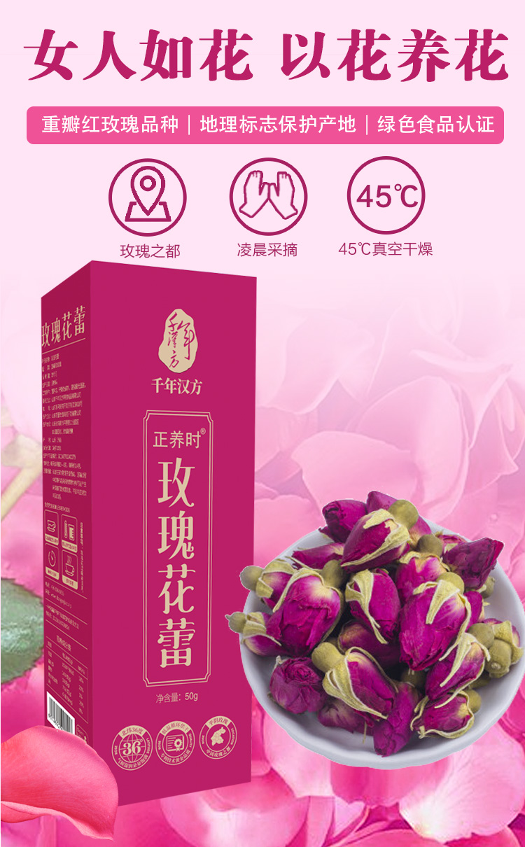 优选丨 千年汉方玫瑰花蕾 45°低温真空干燥锁鲜专利工艺 颗颗饱满 ,女人如花,以花养花。