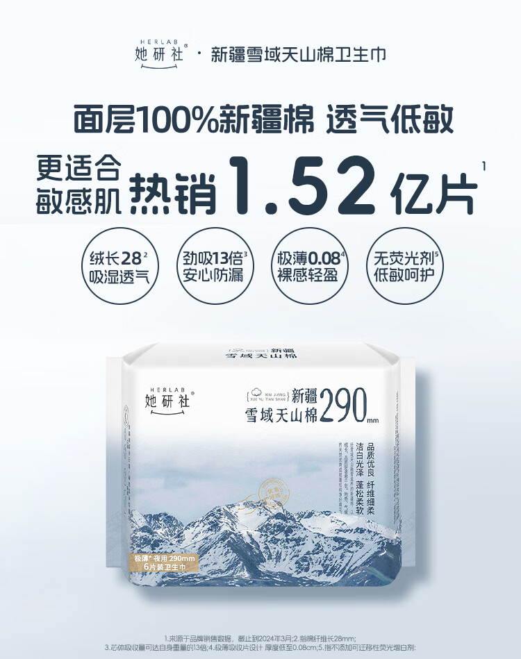 她研社 新疆棉超薄卫生巾量多日用夜用290mm*6片