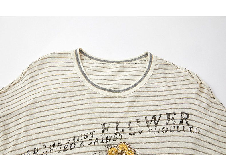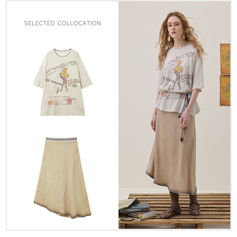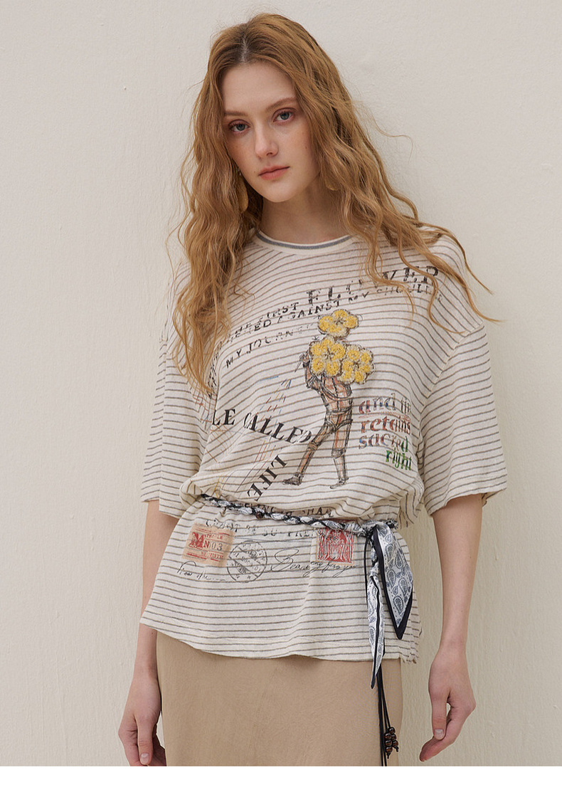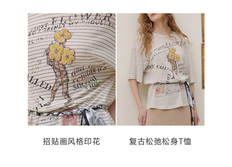 谜底印花T恤短袖2026年夏季新品复古条纹宽松随性休闲女262MT0609