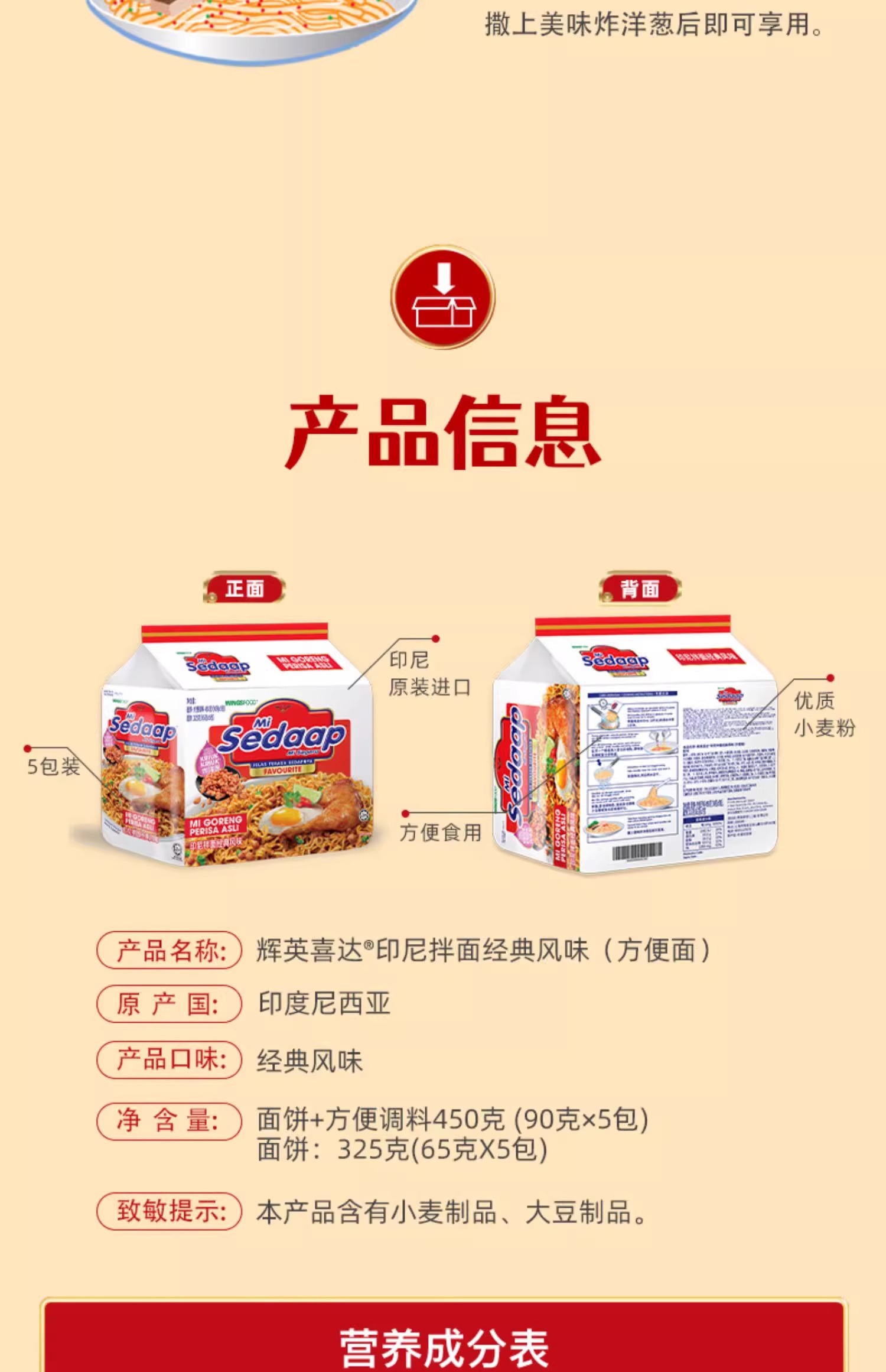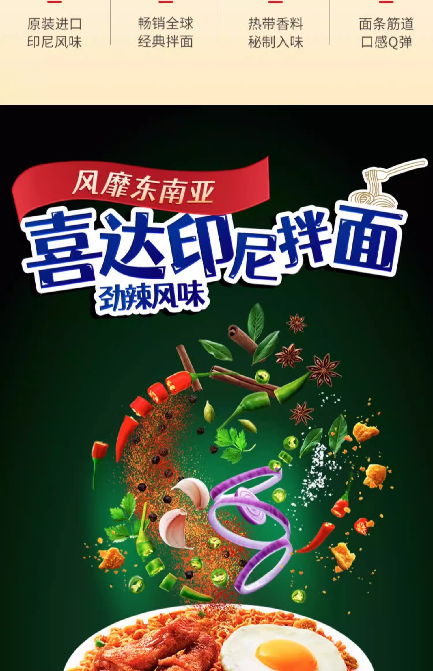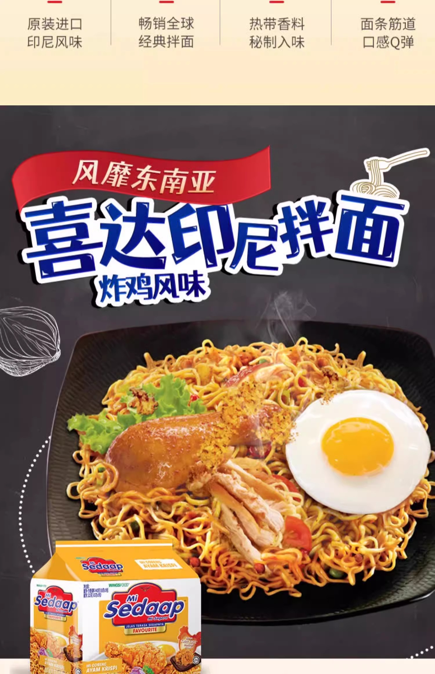 辉英喜达印尼拌面经典/炸鸡/劲辣风味 多款式可选 印尼进口网红捞面 早餐速食方便面夜宵泡面营养拌面