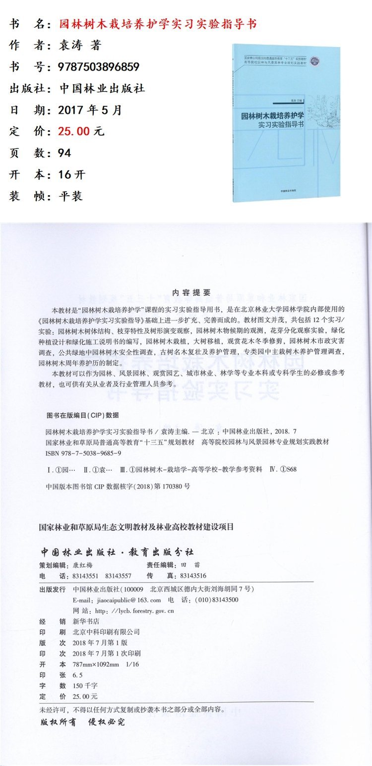 园林树木栽培养护学实习实验指导书 9685 普通高等教育十三五规划教材 高等院校园林与风景园林专业规划实践教材 中国林业出版社